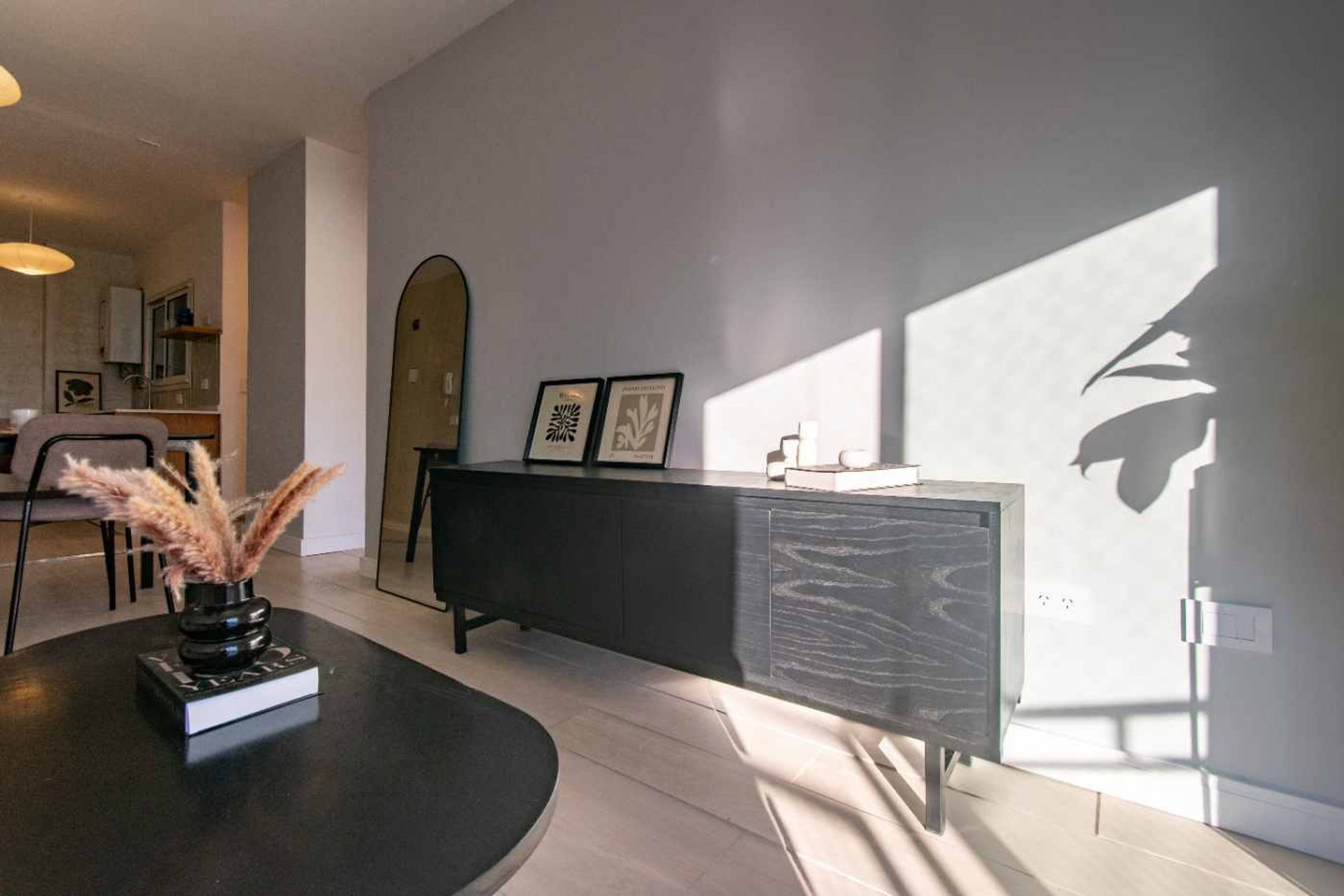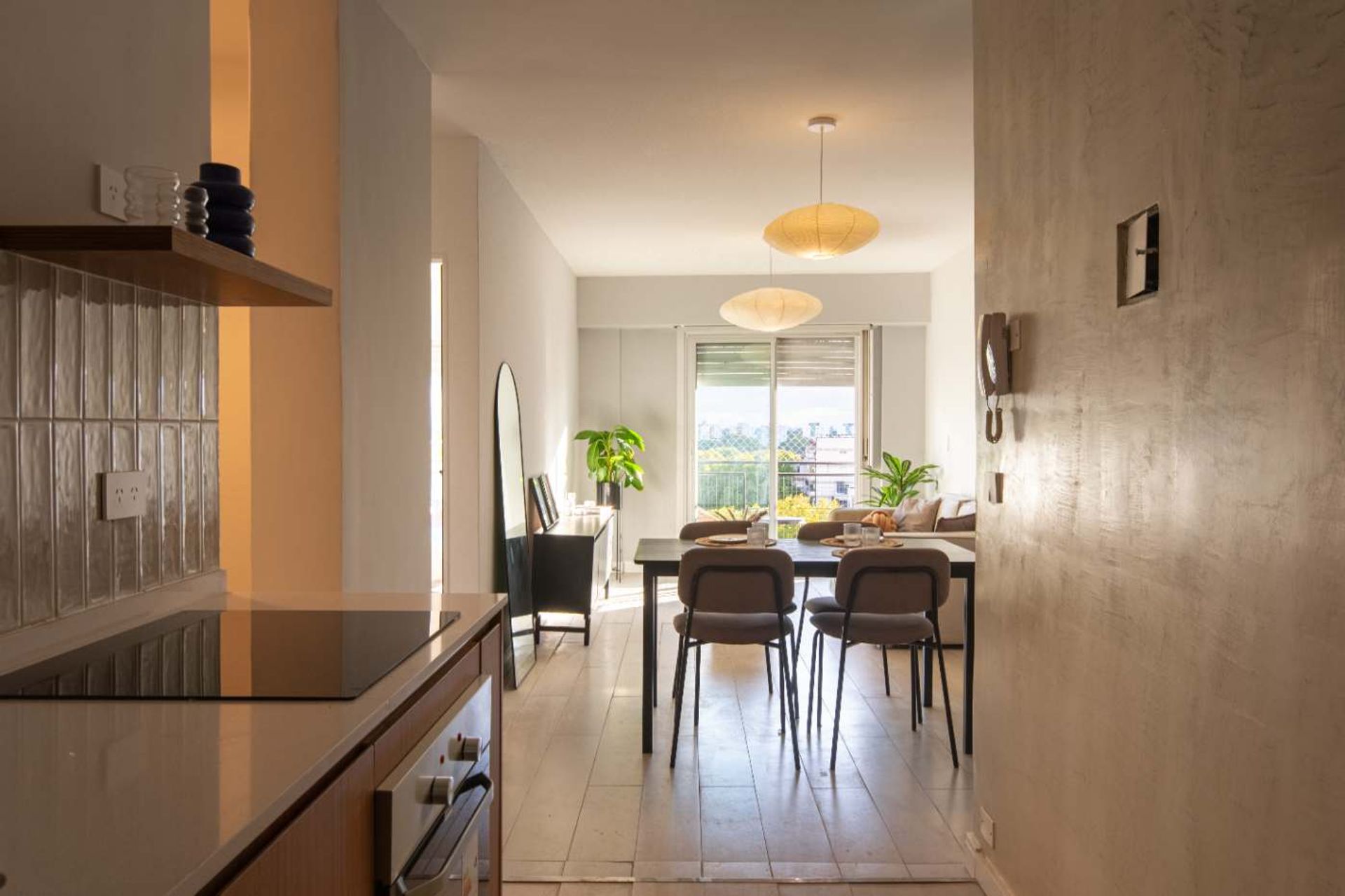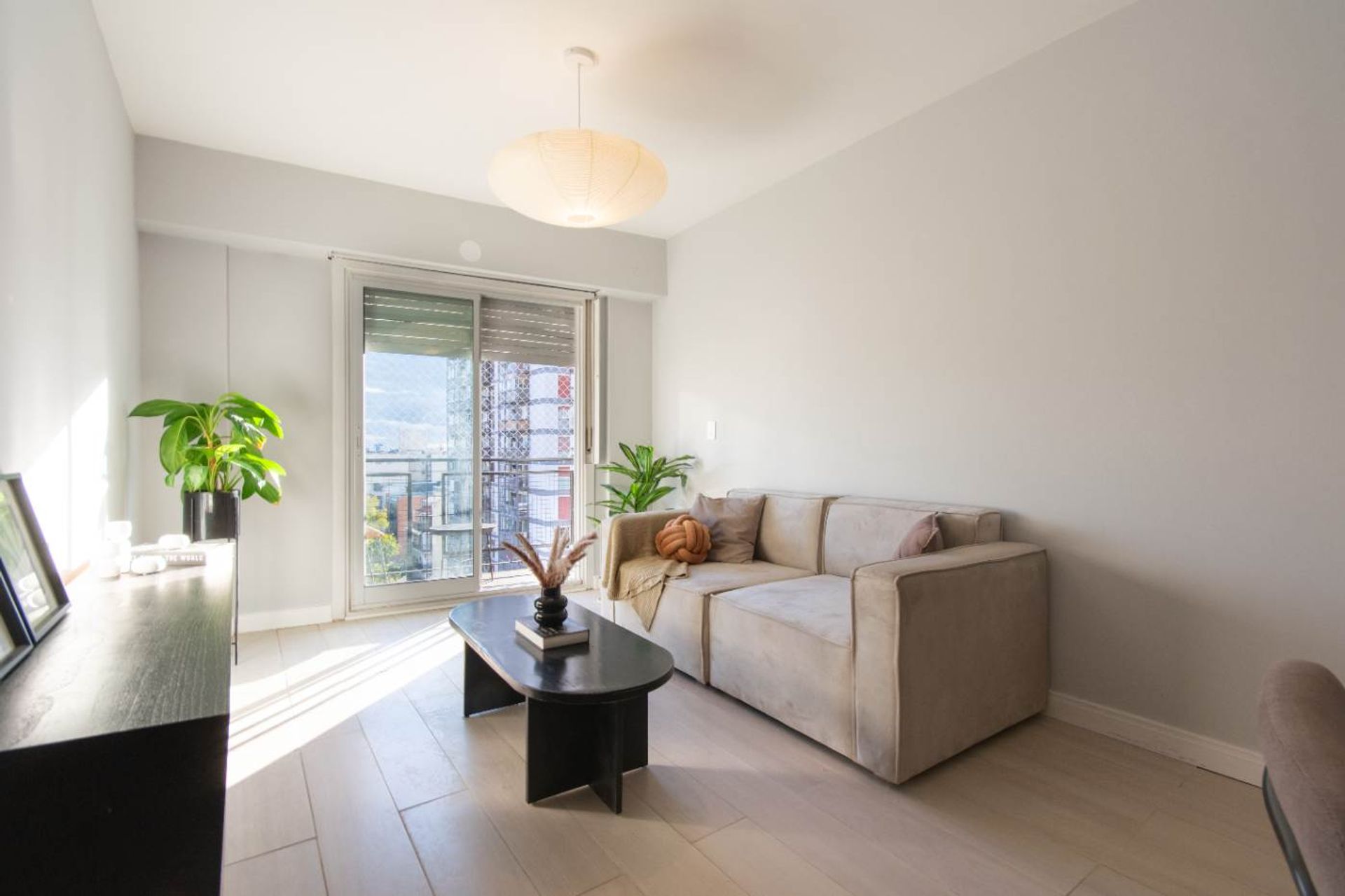 1‑bedroom apartment, 52.15 m², located on the 10th floor of a building in Vicente López. The unit features a spacious 4.97 m² balcony in front that offers an unrivaled panoramic view. Inside there are two rooms: a bedroom with a wardrobe and a living‑dining area with access to the balcony. The kitchen is fully equipped, with lower cabinets, an oven, an electric stove, and a separate laundry area. The property includes a water heater and is finished to new standards, with abundant natural light. It is situated in a strategic area of Vicente López, with access to the Metrobús, several bus lines, and a wide selection of shops just a few steps away.