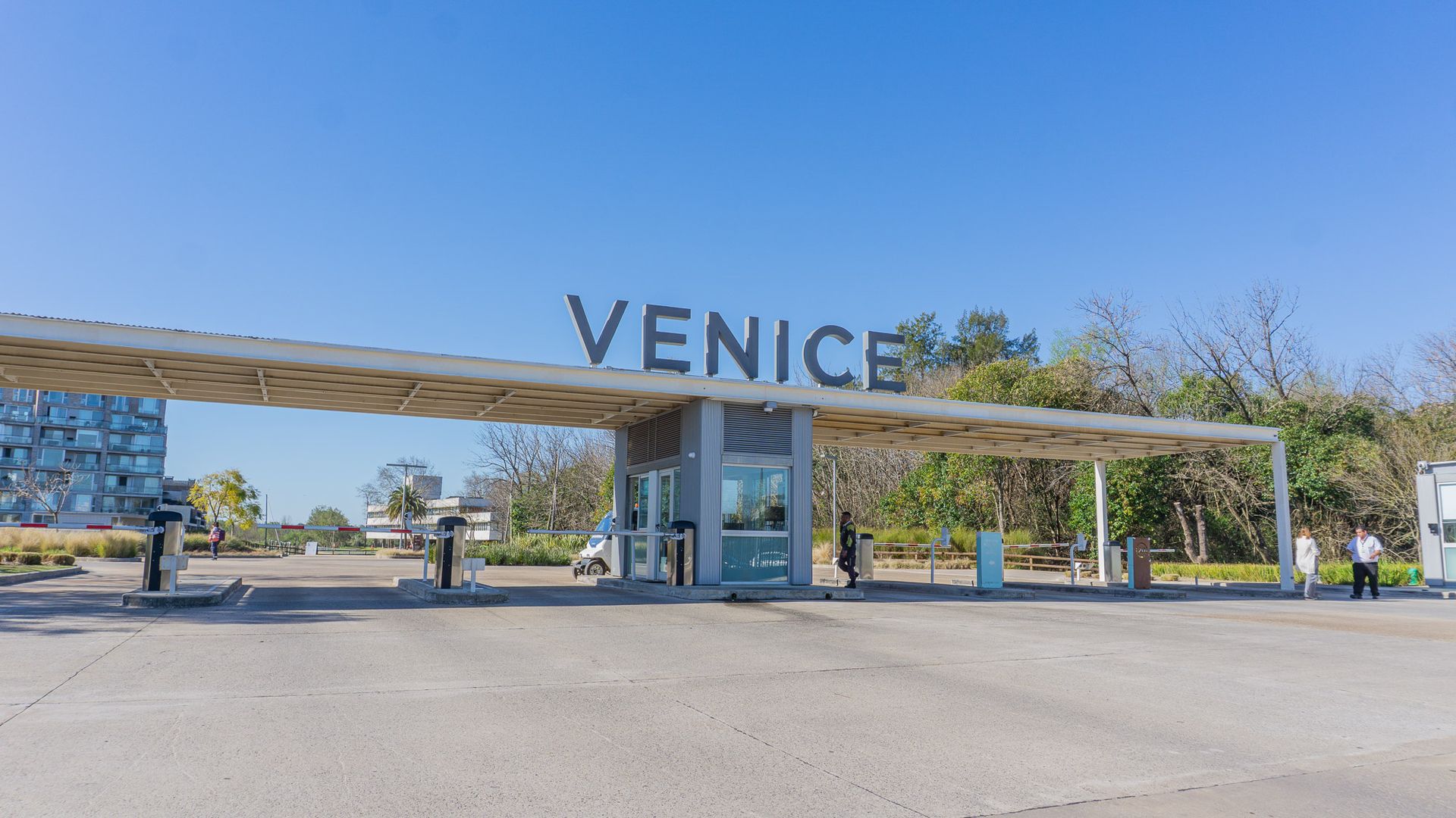 The VENICE complex spans a private 32‑hectare property with a 500‑meter frontage on the Luján River, and offers an extensive range of high‑end amenities: two five‑star hotel‑inspired pools, green spaces and lush forests with fire pits, a SUM with coworking, a reading and relaxation area, boat moorings, a fully equipped gym, sauna and locker rooms, paddle tennis courts, laundry facilities, a children’s playground, and 24‑hour security.