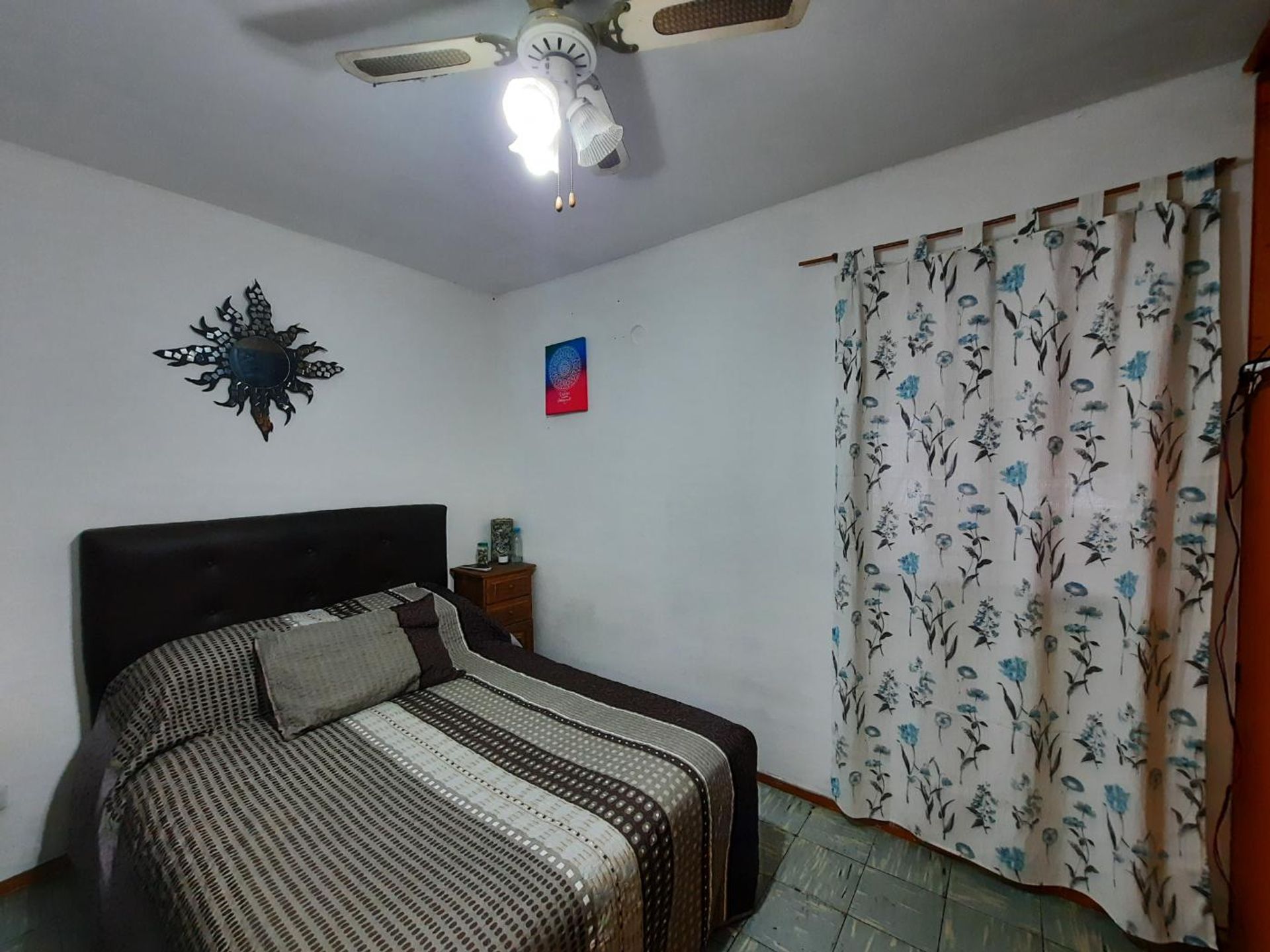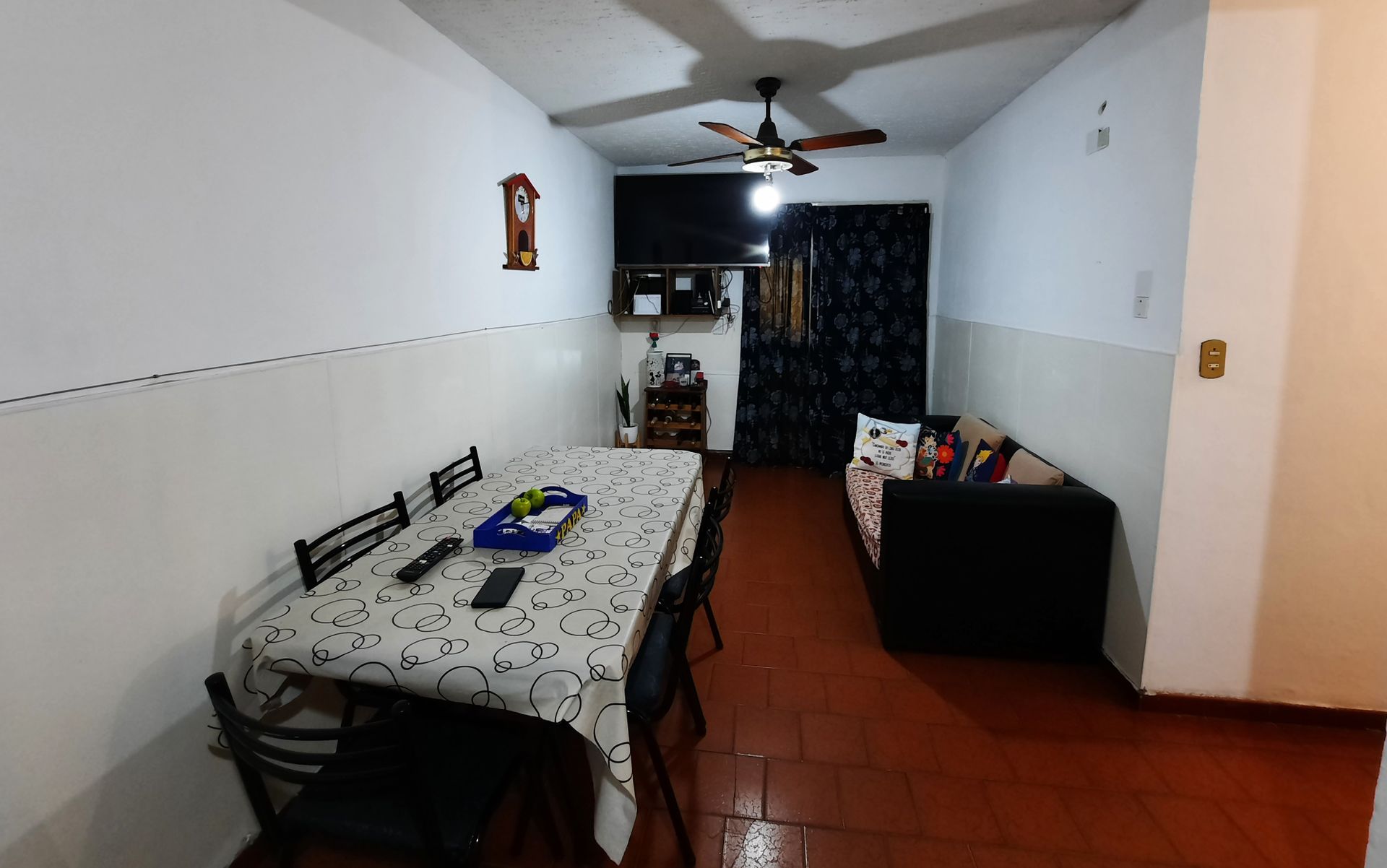 Four-room ground-floor apartment with patio, located in the intersection of Camino Real and Panamericana, San Isidro neighborhood, Boulogne. The entrance is on the right, featuring a fully equipped kitchen with cabinets in excellent condition. From the kitchen you access the first bedroom with wardrobe and the powder room with sink. The main bathroom includes a toilet and shower. Continuing down the hallway you reach the second bedroom with wardrobe and the third bedroom opposite it. All rooms have windows and ceiling fans.