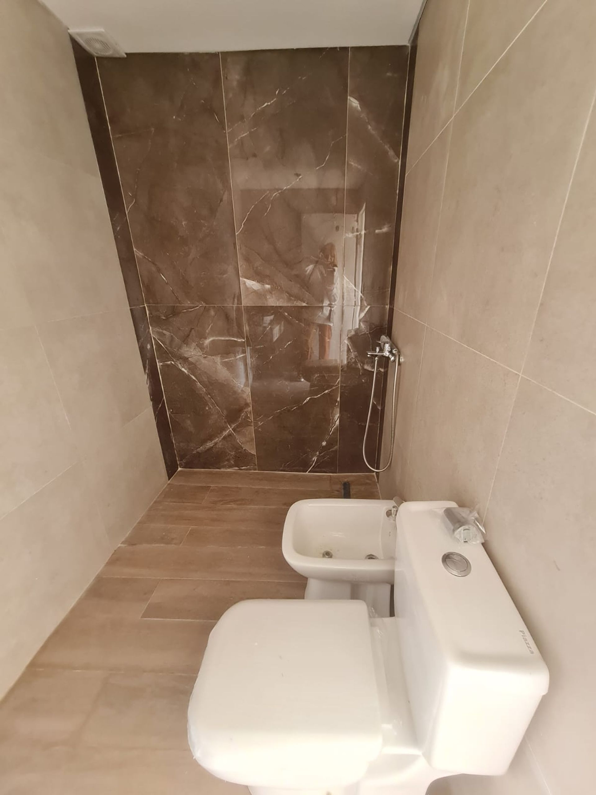 The en‑suite bedroom includes a full bathroom, wardrobe, and balcony access, providing a private and comfortable retreat. All electrical systems are installed, with an individual water heater and pre‑installation of air‑conditioning units (cooling and heating). Bathrooms and toilets are tiled with porcelain, and the openings are black aluminum, ensuring durability and style.