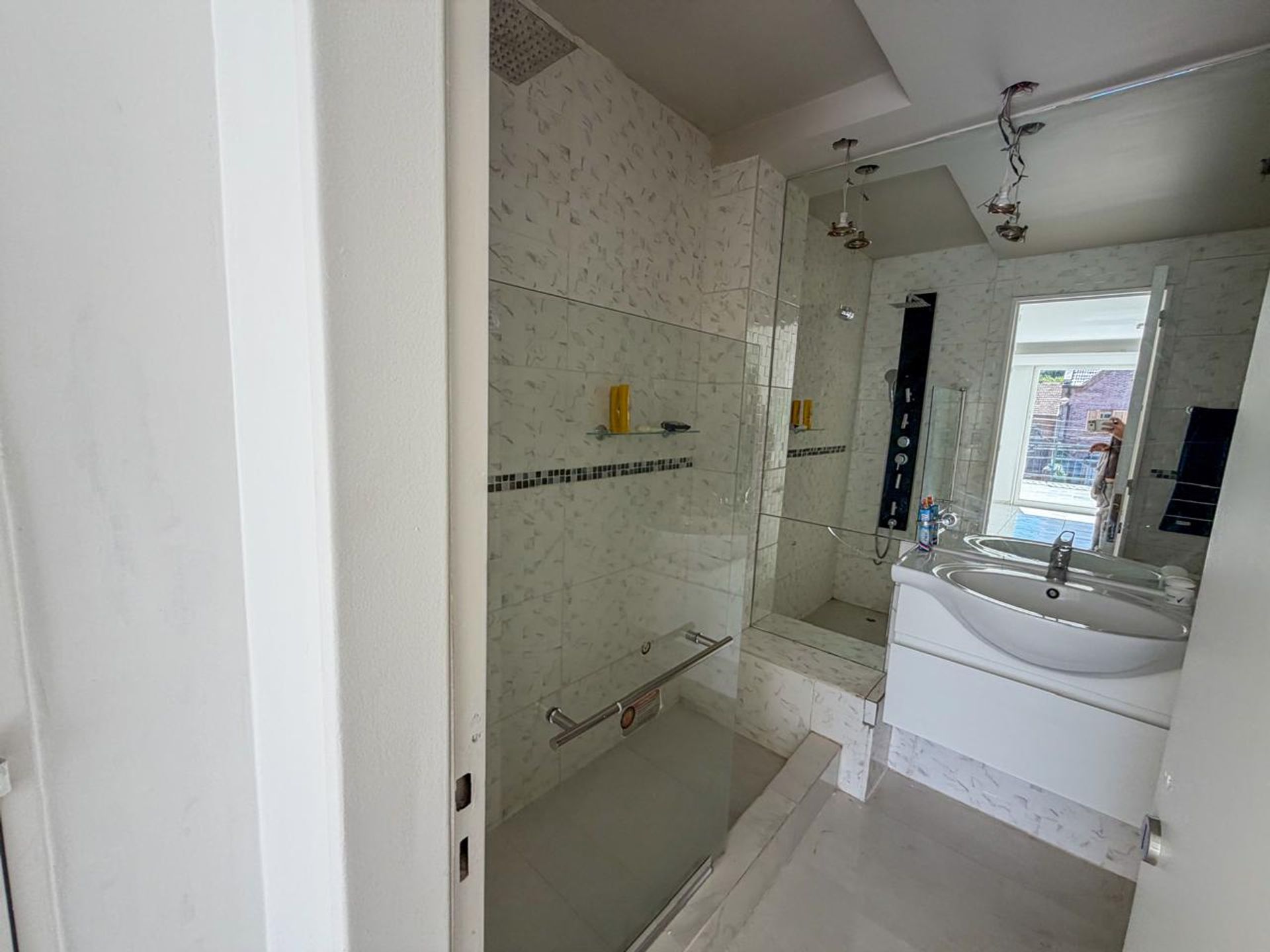 Master suite with walk‑in closet and full bathroom, with exit to front terrace.