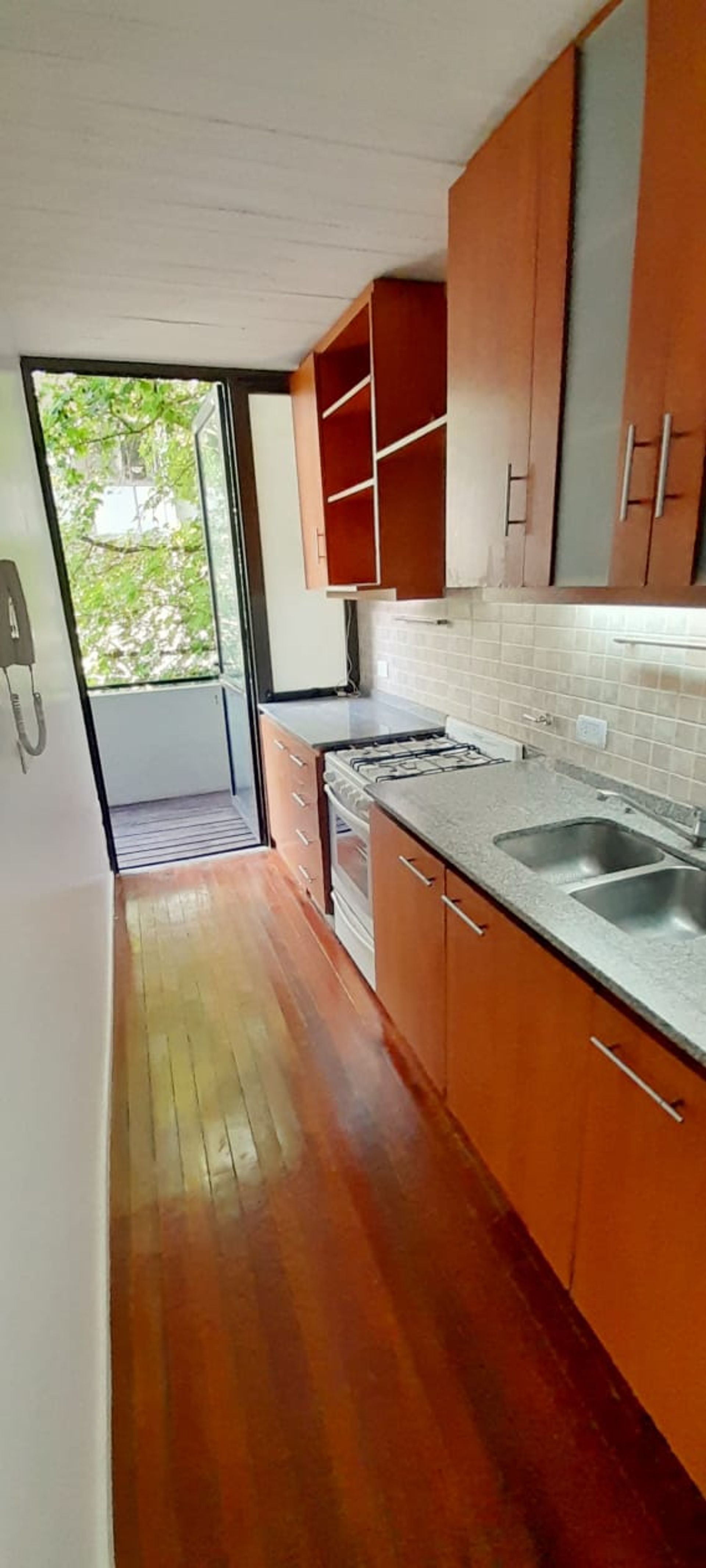 55 m² duplex apartment in the La Calabria neighborhood, San Isidro, on 3 de Febrero street. The property, with 2 rooms and 1 bedroom, is located on the first floor of a three-level building and has 50 m² of covered area and 5 m² of semi‑covered area. The layout is functional and contemporary: the bedroom features a three‑door sliding wardrobe, a full bathroom, and a toilet; the spacious living‑dining area opens onto a balcony and the kitchen, with wood cabinets below and above the countertop, is designed for maximum practicality. Double‑height windows and BlackOut panels ensure brightness, thermal comfort, and privacy. The internal spiral staircase connects the levels and provides a fluid, modern architectural design with southeast orientation.