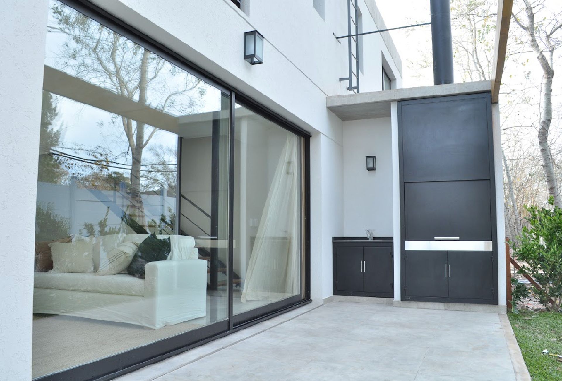 On the ground floor, an elegant reception hall with wardrobe leads to a secondary bedroom with walk‑in closet and full bathroom. The spacious living‑dining area, with access to the balcony, opens to an integrated kitchen with island and a terrace with grill and laundry, ideal for gatherings and outdoor relaxation. A courtesy toilet completes the ground floor.