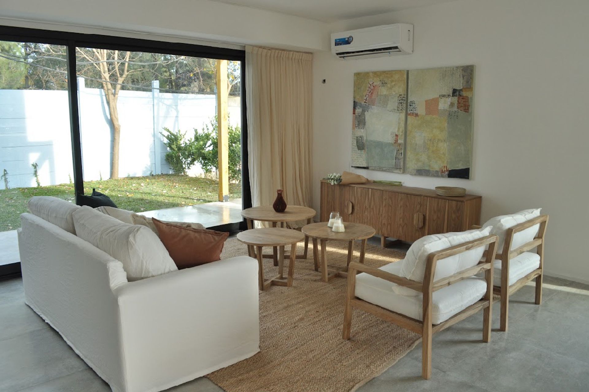 Among its advantages are bright and functional rooms, level separation that guarantees privacy, a private terrace perfect for meetings or relaxation, and high‑end finishes. The interior floors are wood‑look vinyl, the bathrooms and balconies feature high‑quality porcelain tiles, the kitchen countertops are black Boreal granite and the bathrooms use white Cana marble. The furniture and wardrobes are melamine wood‑look, and the aluminum anodized black frames with double glass add a modern and efficient touch.
