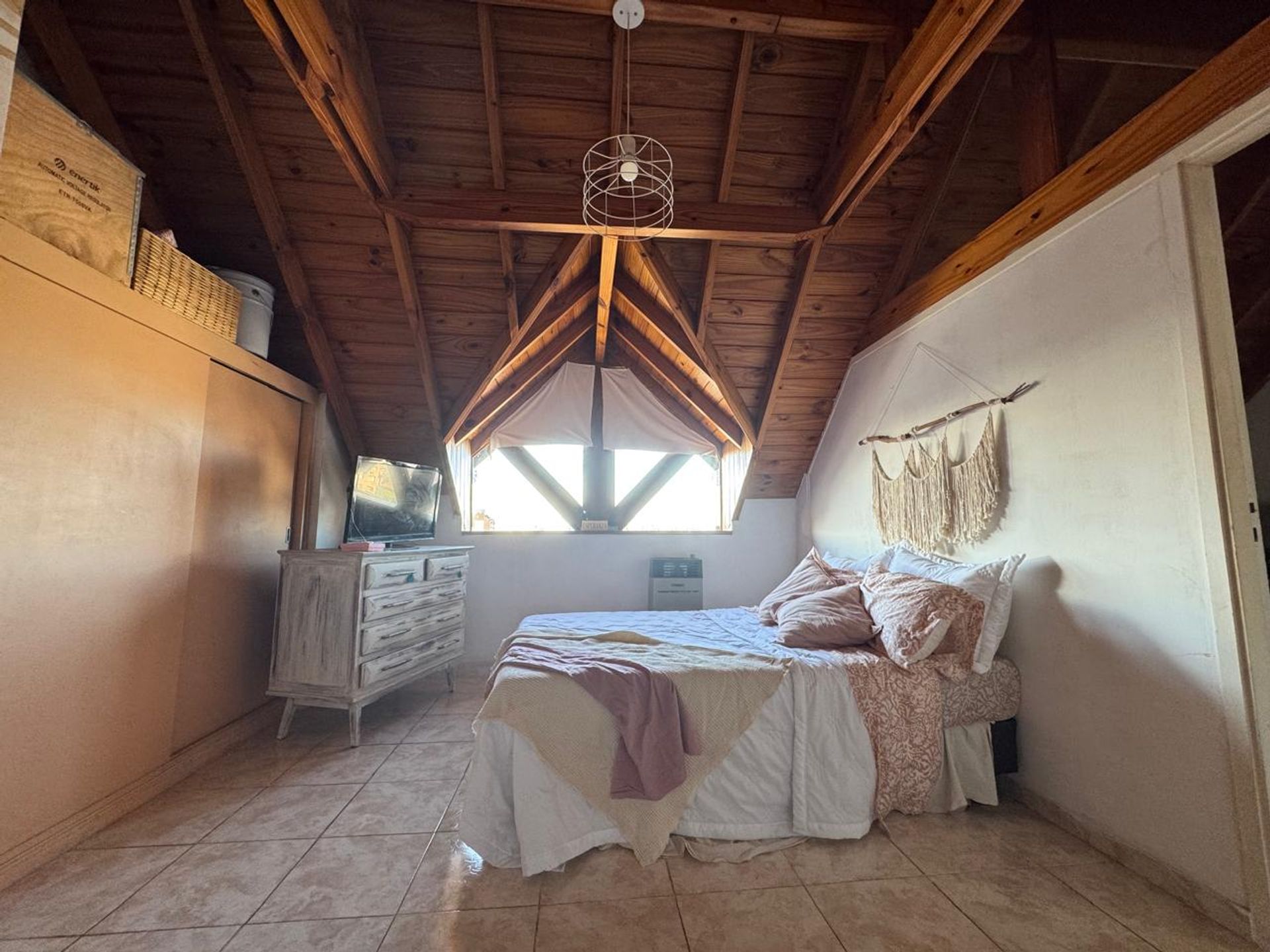 On the ground floor there is a spacious living‑dining area with an integrated kitchen and a laundry hookup. There is also a full bathroom. The upper floor houses the main bedroom with a walk‑in closet and a second room that today functions as a second bedroom; it can also be used as a desk or dressing room. Heating is provided by a stove and the living area has an air‑conditioning unit for cooling and heating.
