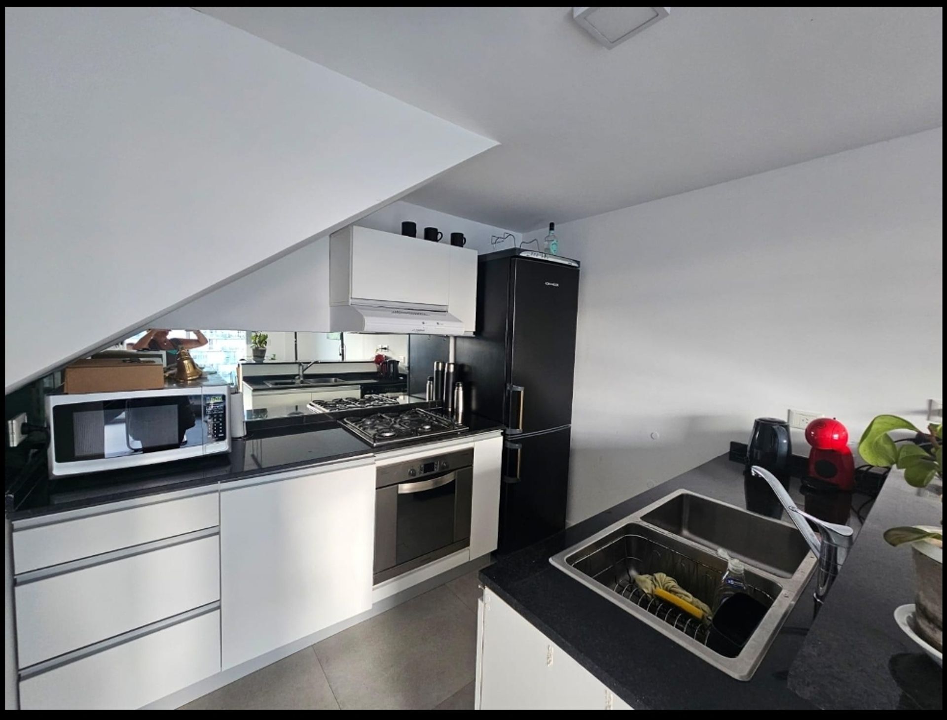 The property features a large terrace on the top floor, equipped with a pool and solarium, perfect for outdoor gatherings. Additionally, it includes two barbecue areas, a gym, laundry, 24‑hour security, and a covered garage.