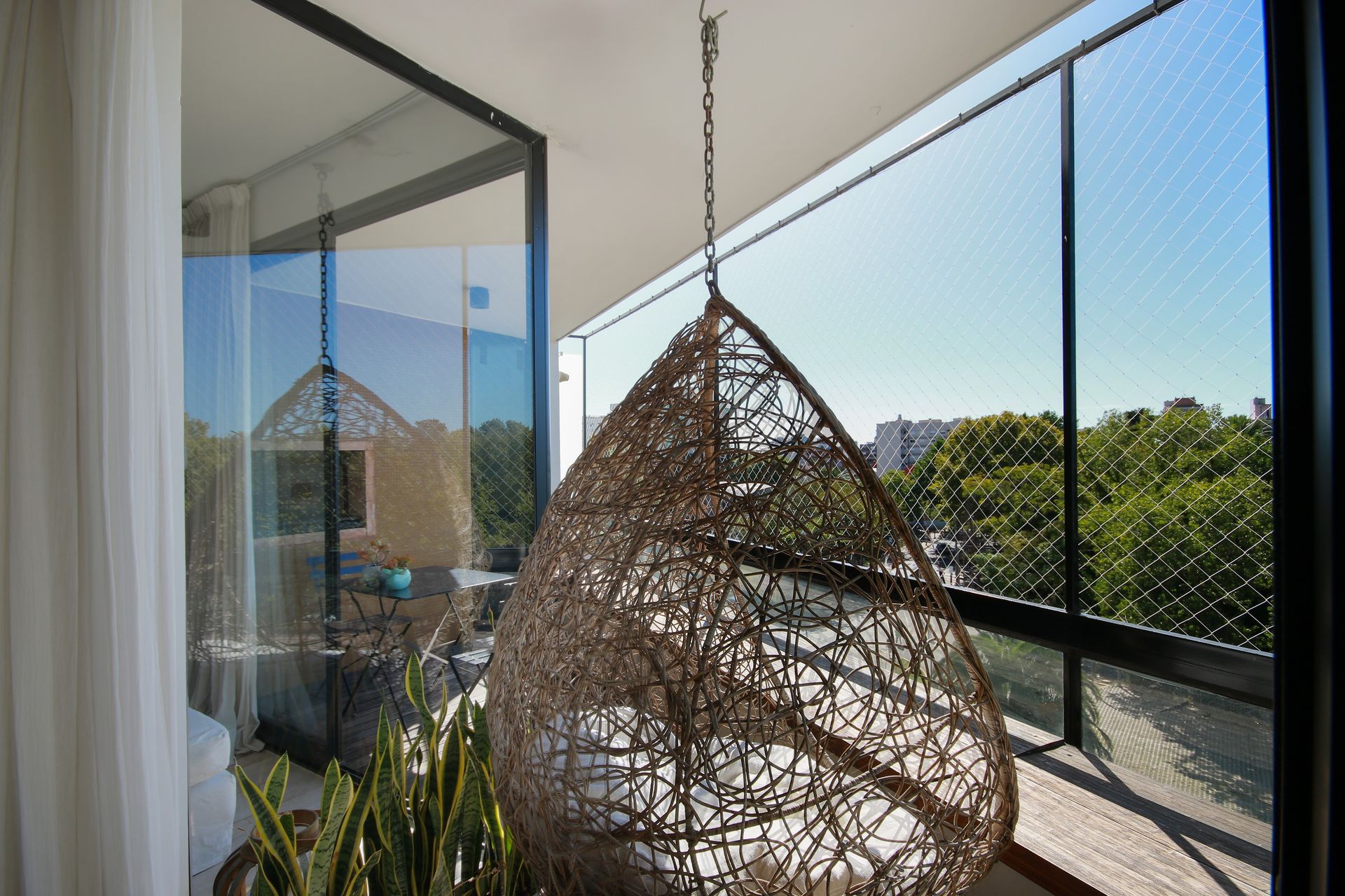 This 3-room duplex, recently renovated, features a contemporary design with open views on both levels, creating a bright and welcoming environment. Entry is characterized by a reception piece with a custom-built coat closet, offering a functional and elegant space from the first step. The living and dining rooms are finished with wood-style porcelain tiles and feature floor-to-ceiling openings that provide access to a continuous balcony equipped with a grill, ideal for enjoying the view and the weather. The semi-integrated kitchen is equipped with a Silestone countertop and a breakfast bar with custom cabinetry, optimizing space and adding a touch of sophistication. The full bathroom includes a bathtub, Silestone countertop, cement basin, and Robinet fixtures, combining style and functionality. Access to the upper floor is via a staircase with wooden balusters, where there are two bedrooms and a full bathroom with shower, Robinet fixtures, and a mirror with anti-fog system. A spacious private terrace, accessible from both bedrooms, offers an additional space to enjoy the outdoors. All rooms are equipped with cooling/heating air conditioning, and the property has radiant floor heating and an independent boiler to ensure comfort in all seasons. For your convenience, the property includes a double uncovered garage.