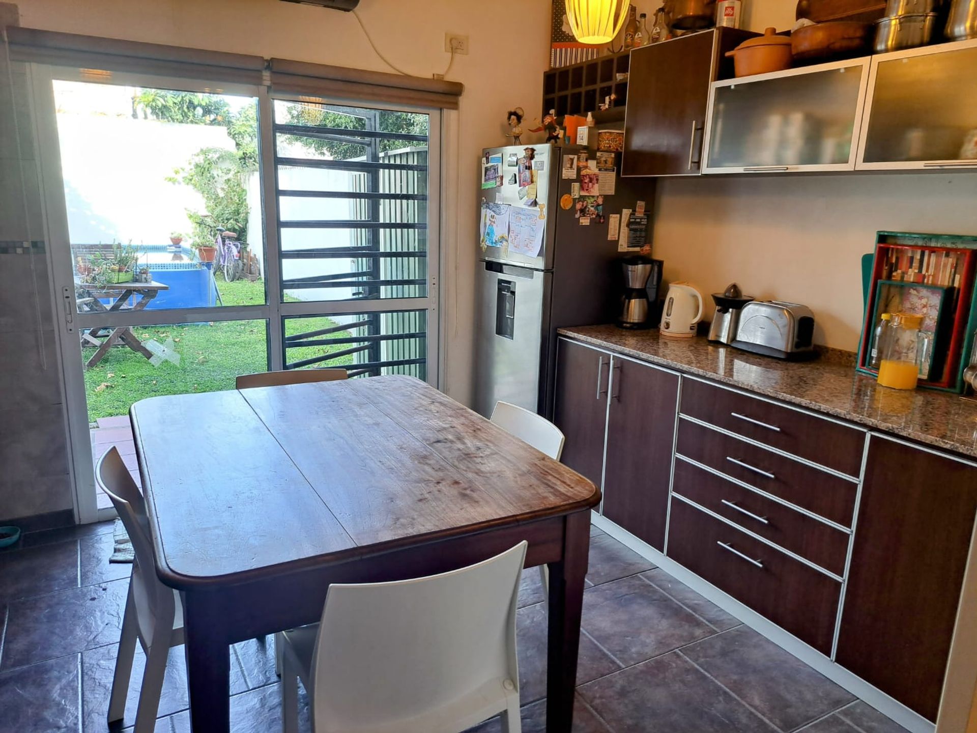 Kitchen‑dining area with view of the backyard