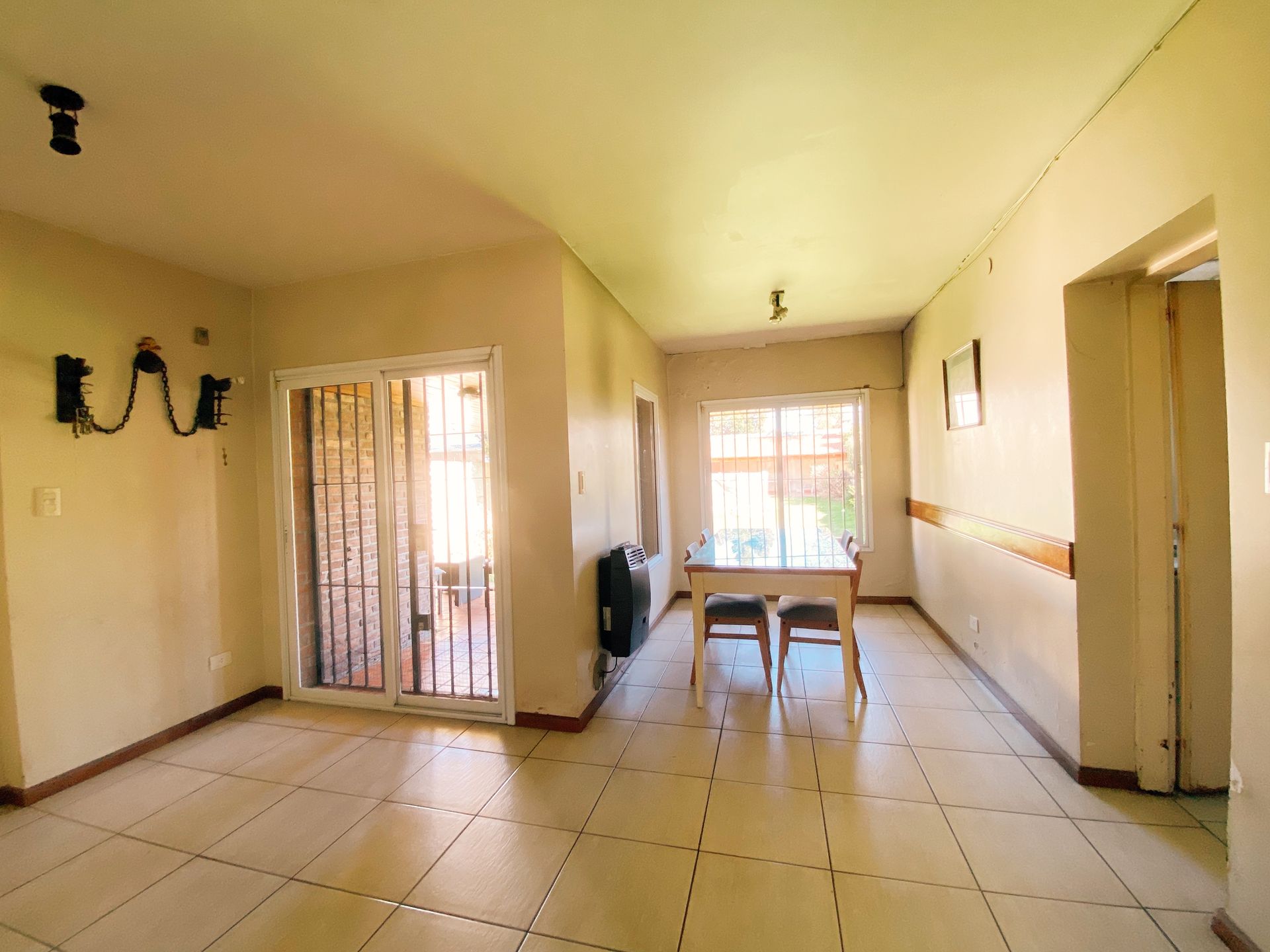Upon entry, a spacious living area opens up, with sliding doors separating the main dining room from the casual dining area and lounge, creating a large integrated ambience. A reception toilet is available, and a cozy casual dining room with a large window offers views of the garden. From the living area, a covered gallery leads to the expansive garden with a pool, surrounded by a consolidated green lung. The garden includes a pool with a safety fence, a barbecue area with grill, a laundry pool, and a storage room, ideal for family gatherings. The separate kitchen features a service entrance and high and low melamine cabinetry, as well as a laundry area. There is also a service room with a bathroom or potential office space. The covered garage accommodates two cars, with additional uncovered space.