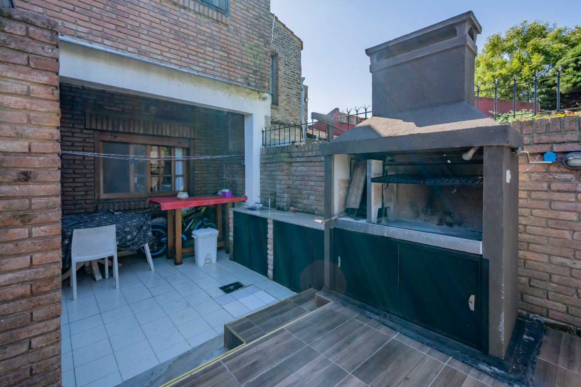 The architectural design combines functionality and elegance, distributing the spaces over two floors. On the ground floor is the main living room, equipped with a wood stove and terrazzo floors, integrated with a kitchen-dining area that has a breakfast bar for six people. The laundry is included, and a covered gallery offers direct access to the garden and the fenced pool. The outdoor areas are complete, with a barbecue, bathroom, ironing area, and a renovated grill with a washing area. A reception toilet and a bedroom with potential use as an office complement the entrance area, while the covered garage with an automatic gate accommodates two vehicles.