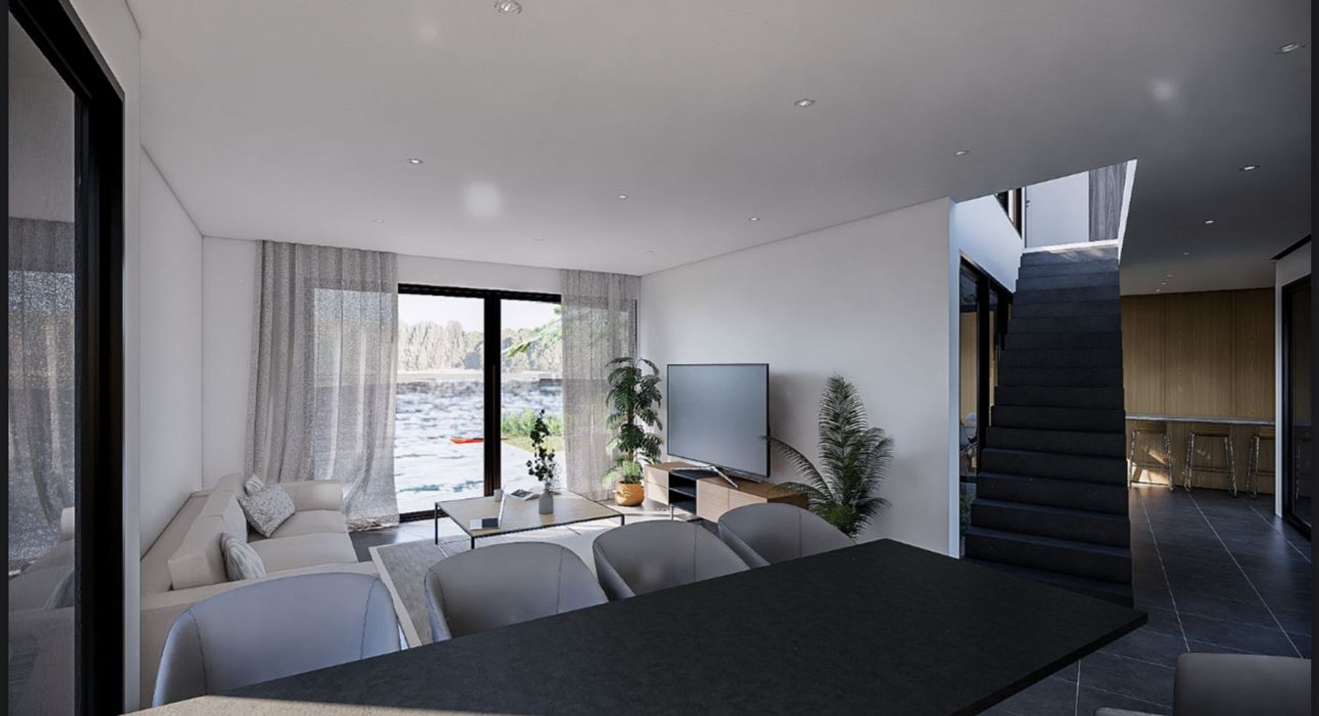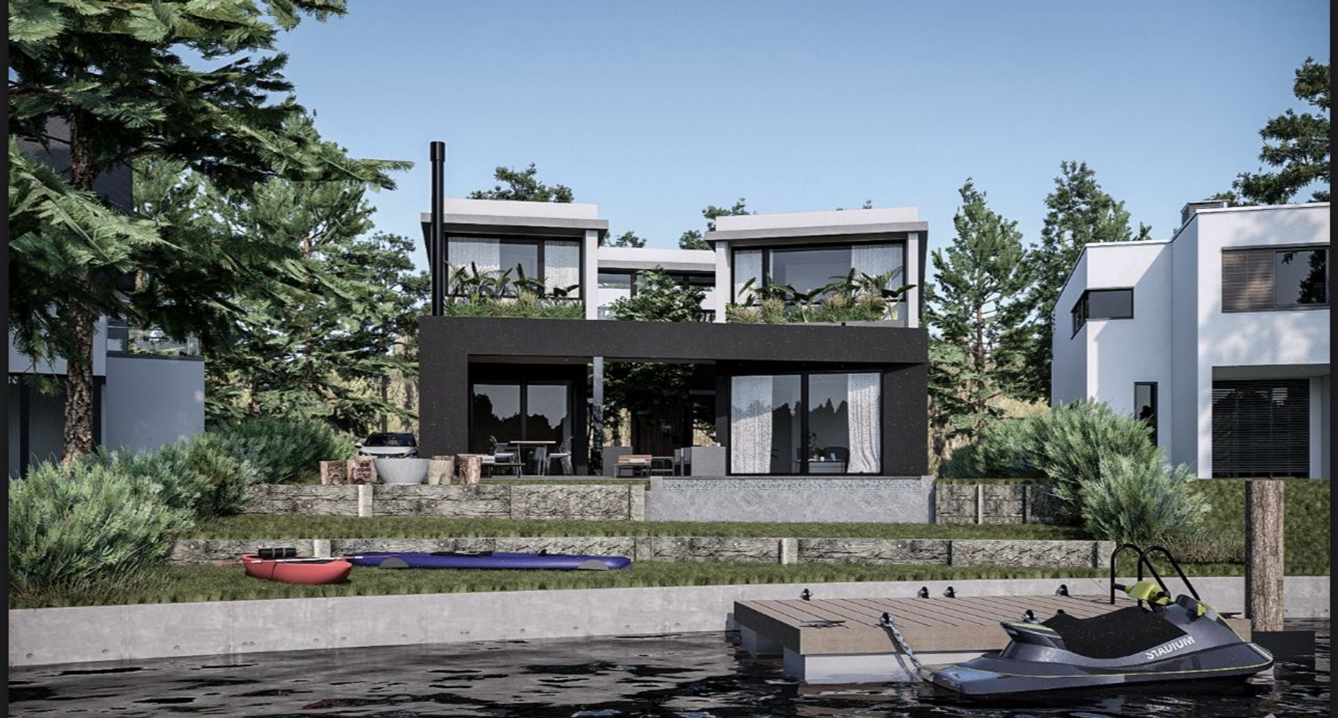 On the ground floor there is a spacious gallery with a grill, ideal for outdoor gatherings, and a pool with an infinity edge and sunbathing area for family enjoyment. The private dock provides direct water access.