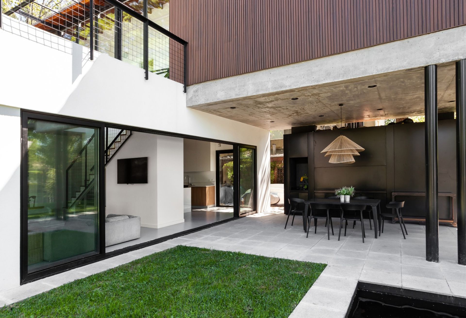 The spacious paved patio, capable of accommodating five vehicles and partially covered, provides a functional and secure space. A majestic ten‑year‑old avocado tree, in full production, enhances the garden with plants and soil, creating a natural and refreshing environment.