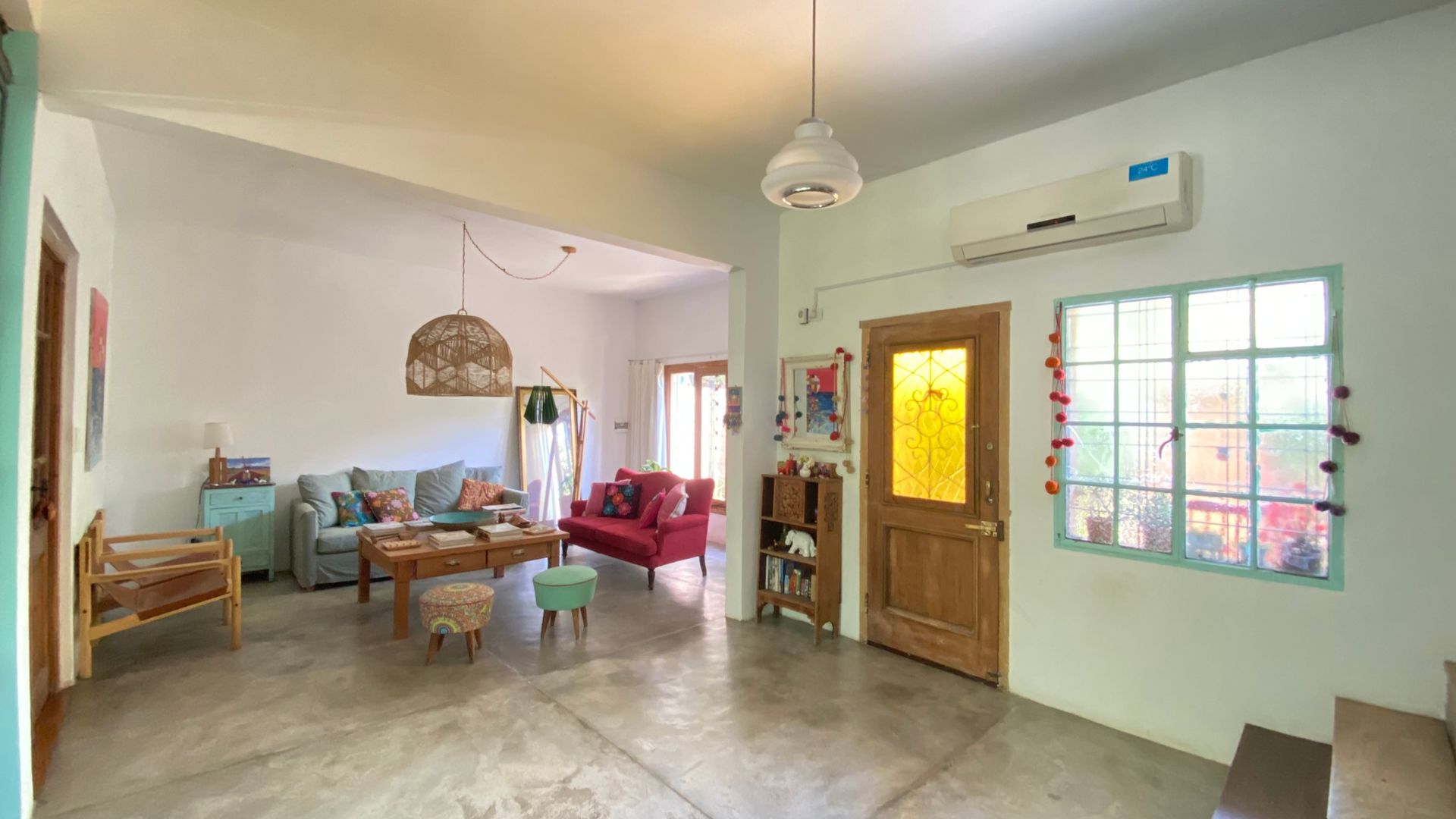 The first floor houses three bright bedrooms. The master bedroom, 6.80 × 2.60 m, and the two secondary bedrooms, 3.30 × 4.30 m and 3.70 × 3.50 m, each feature air conditioning. A full bathroom, 2.15 × 2.30 m, provides convenience. Additionally, a terrace and a workshop offer extra spaces for recreation and projects.