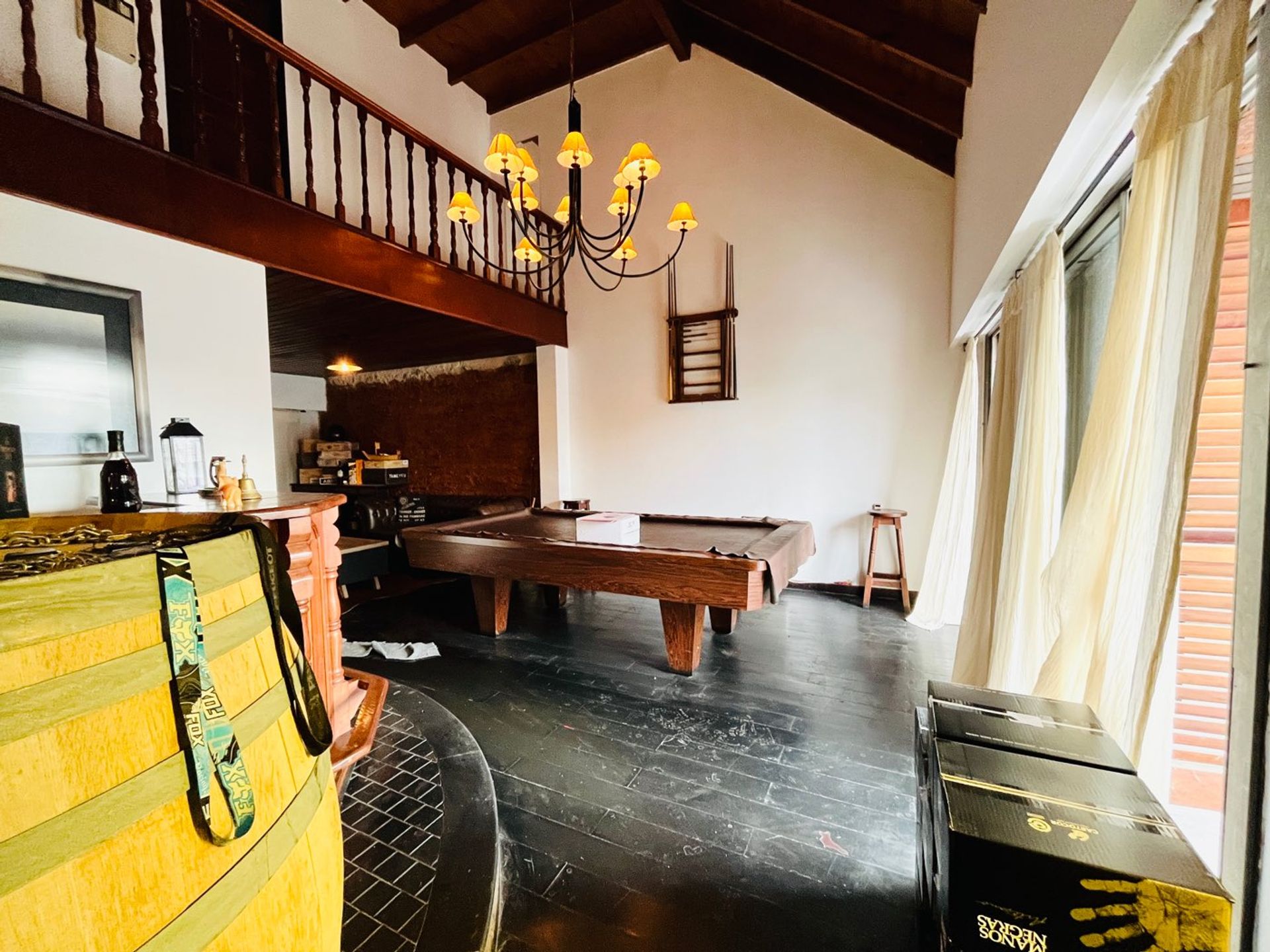 Upon entry, a spacious double‑height living‑dining area opens onto large windows, ensuring abundant natural light and excellent ventilation. The kitchen, with sufficient space for a dining area, requires an update at the worktable base, but it connects functionally with an independent laundry area and a direct exit to the large patio. A well‑sized bathroom complements the service area. Through the patio, access is gained to a fully equipped outdoor kitchen (quincho) with grill and ample cooking space, ideal for gatherings and outdoor celebrations. The covered garage with a pit provides convenience and security for the vehicle.