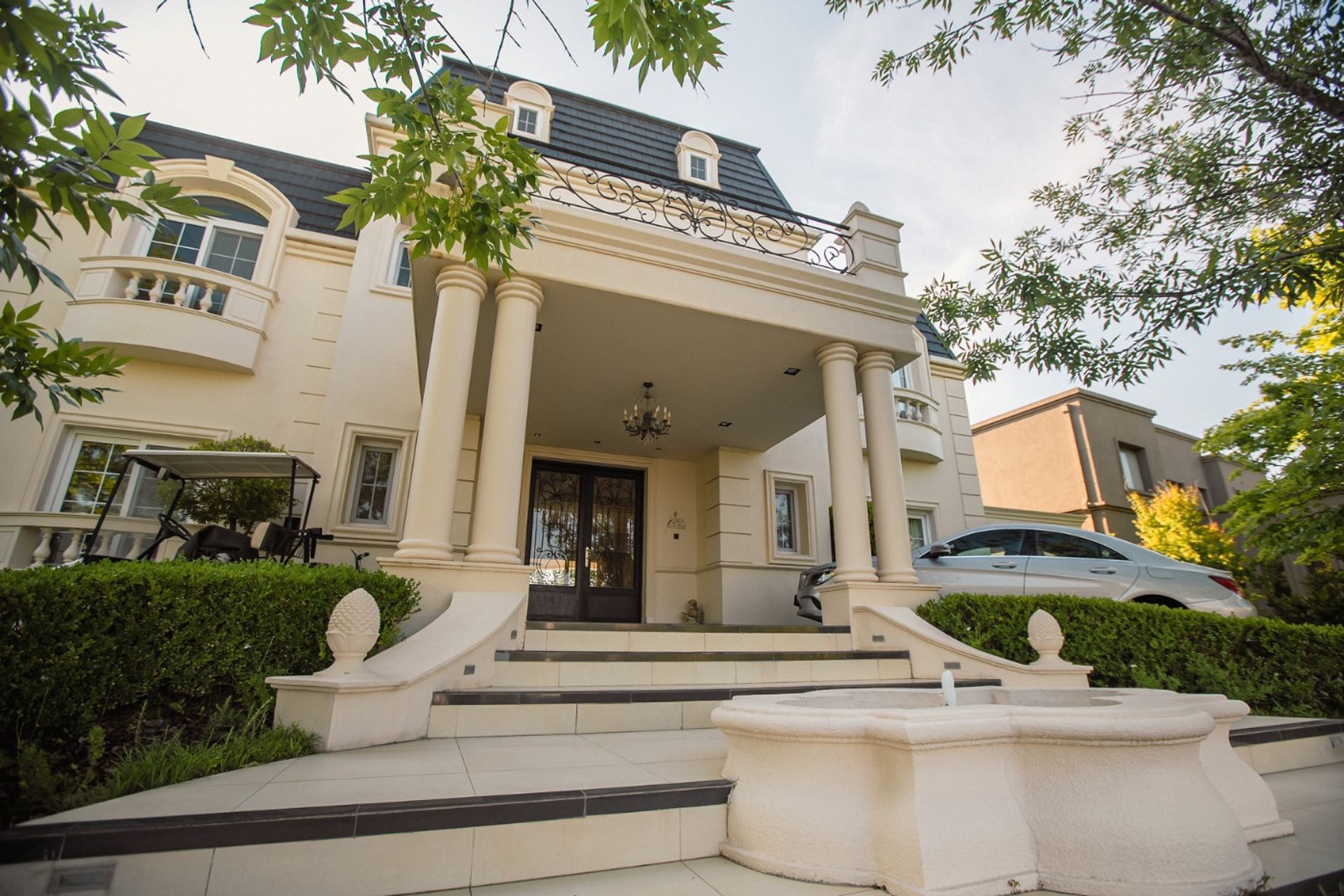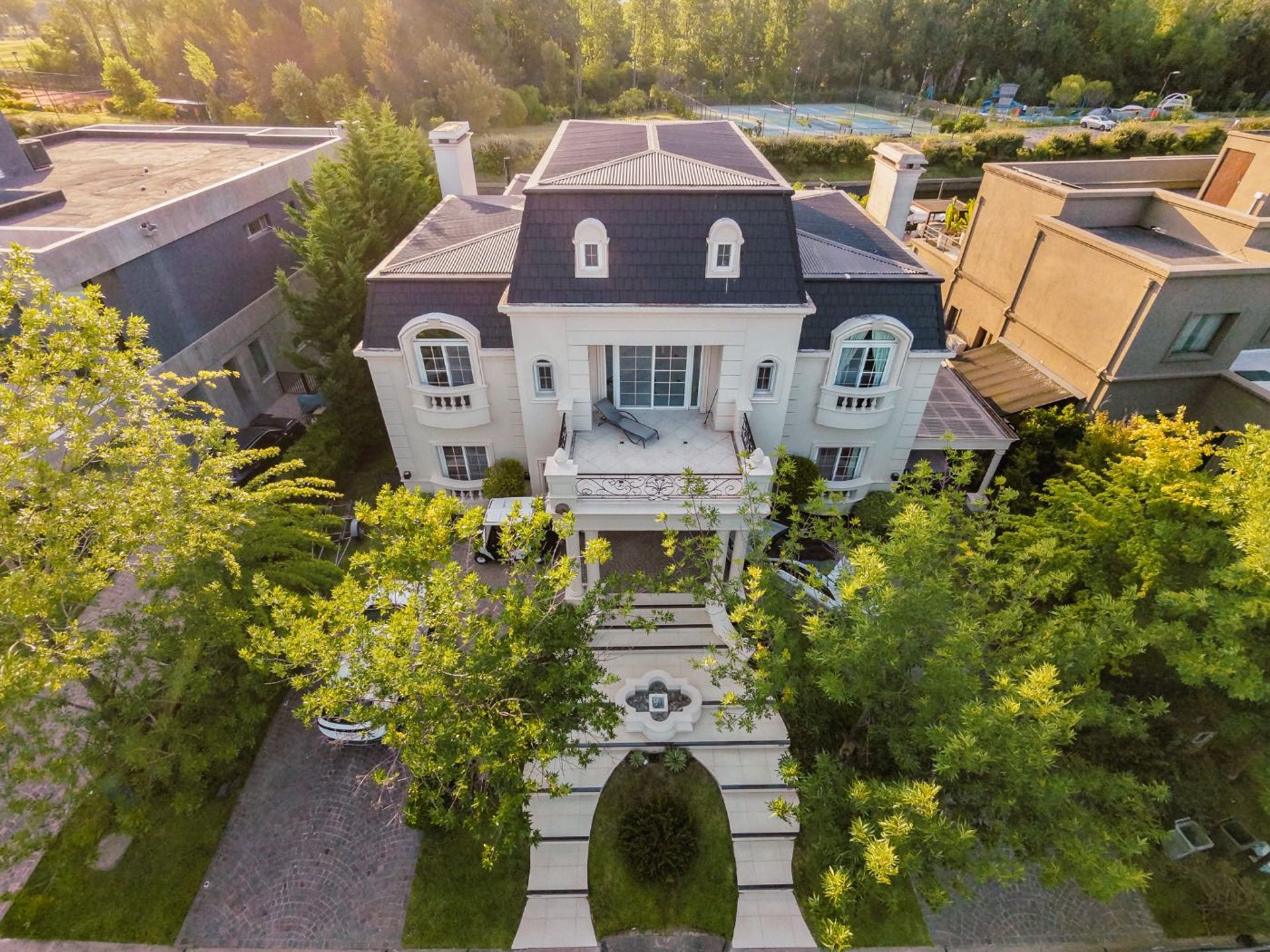 French‑style residence in El Yacht, Nordelta – Riverfront. With six rooms distributed over three floors, the property has 533 m² of covered area and 98 m² of semi‑covered area, on a plot of 911 m², and offers direct access to the Río Luján canal via its own dock.