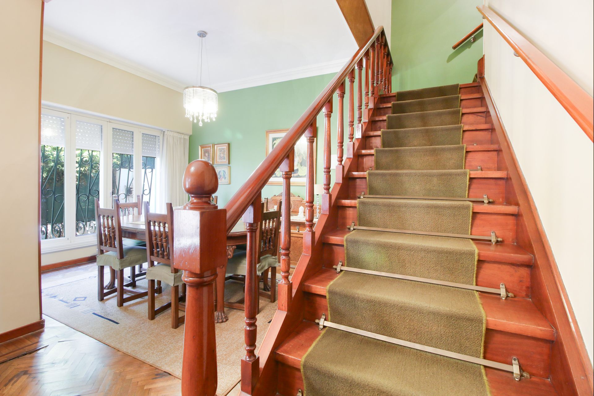 The upper floor includes two bedrooms and a full bathroom, in addition to a distribution hall that provides access to a balcony overlooking the interior patio, creating an intimate and welcoming atmosphere.