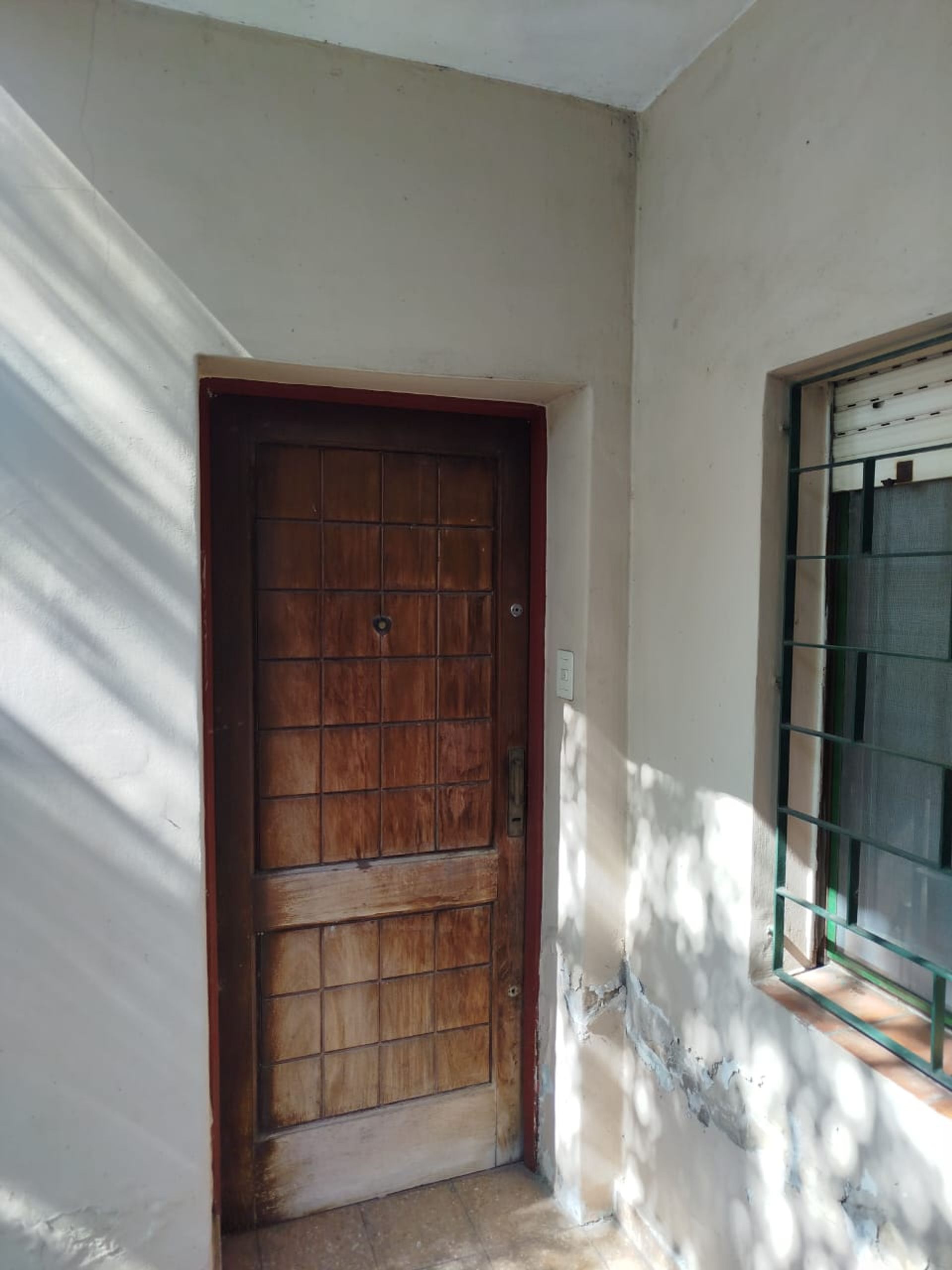 The kitchen, located at the opposite end of the living‑dining area, is functional and lends itself to the creation of a daily dining space, optimizing the flow between kitchen and living area. From there, access the rear patio, which features a storage room in the right corner, ready to be renovated according to needs.