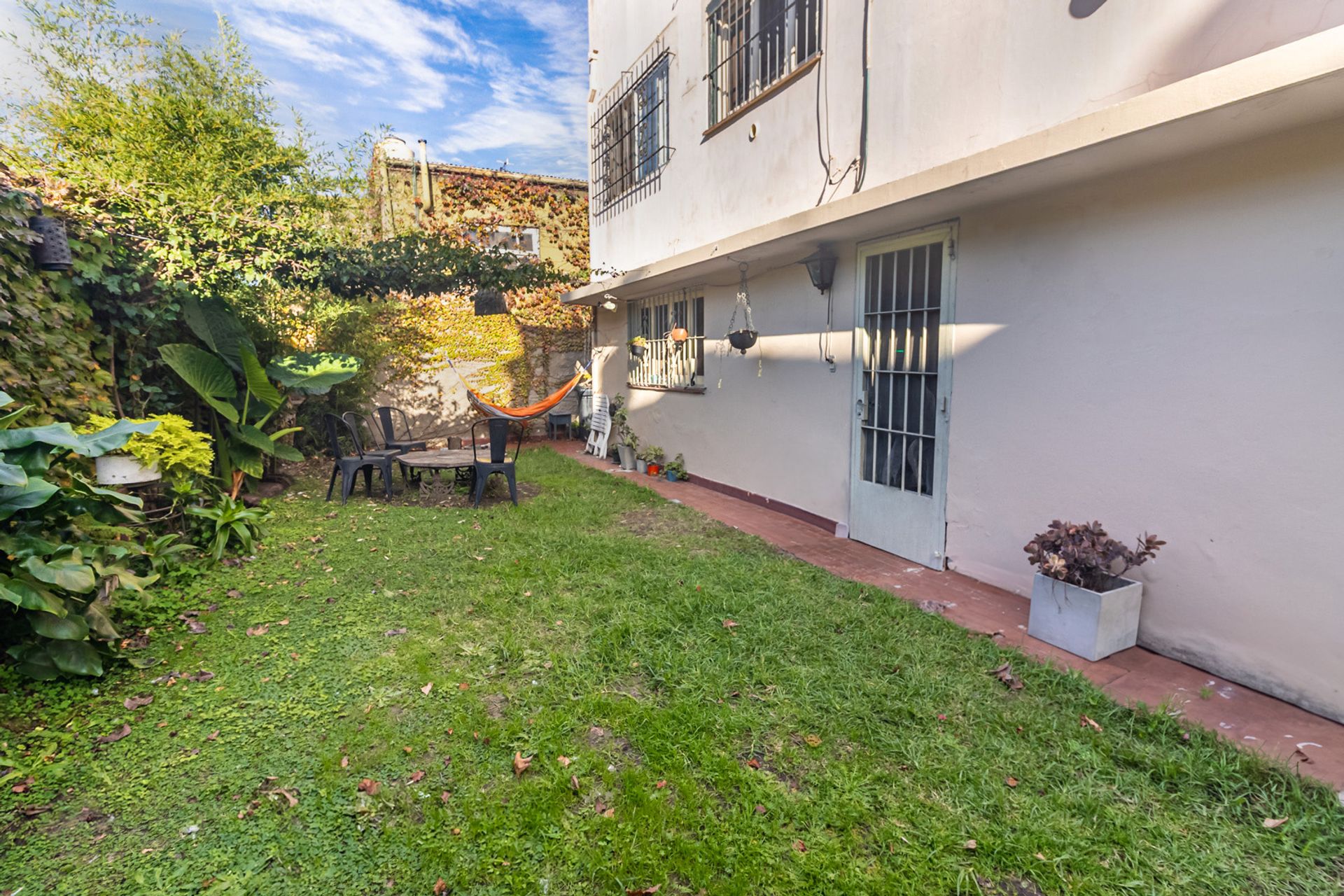 The exterior features a sunny patio facing north, ideal for enjoying any season of the year. A dedicated grilling area invites family barbecues, while an independent laundry room facilitates household chores.