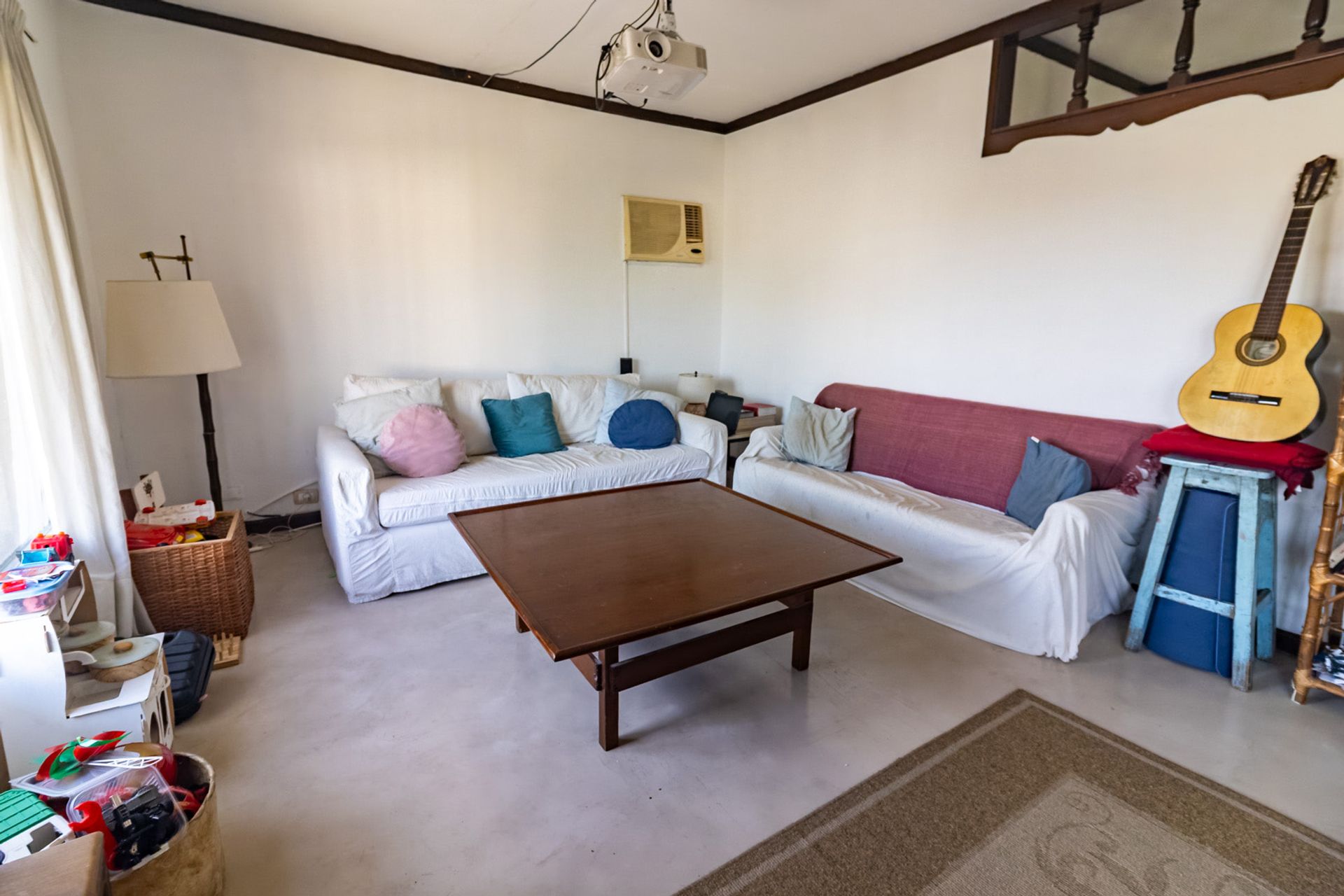 The upper floor houses two bedrooms with large wardrobes that ensure ample storage space. A full bathroom complements the sleeping area. An additional kitchen and a large living room, bathed in natural light, create a welcoming and functional environment.