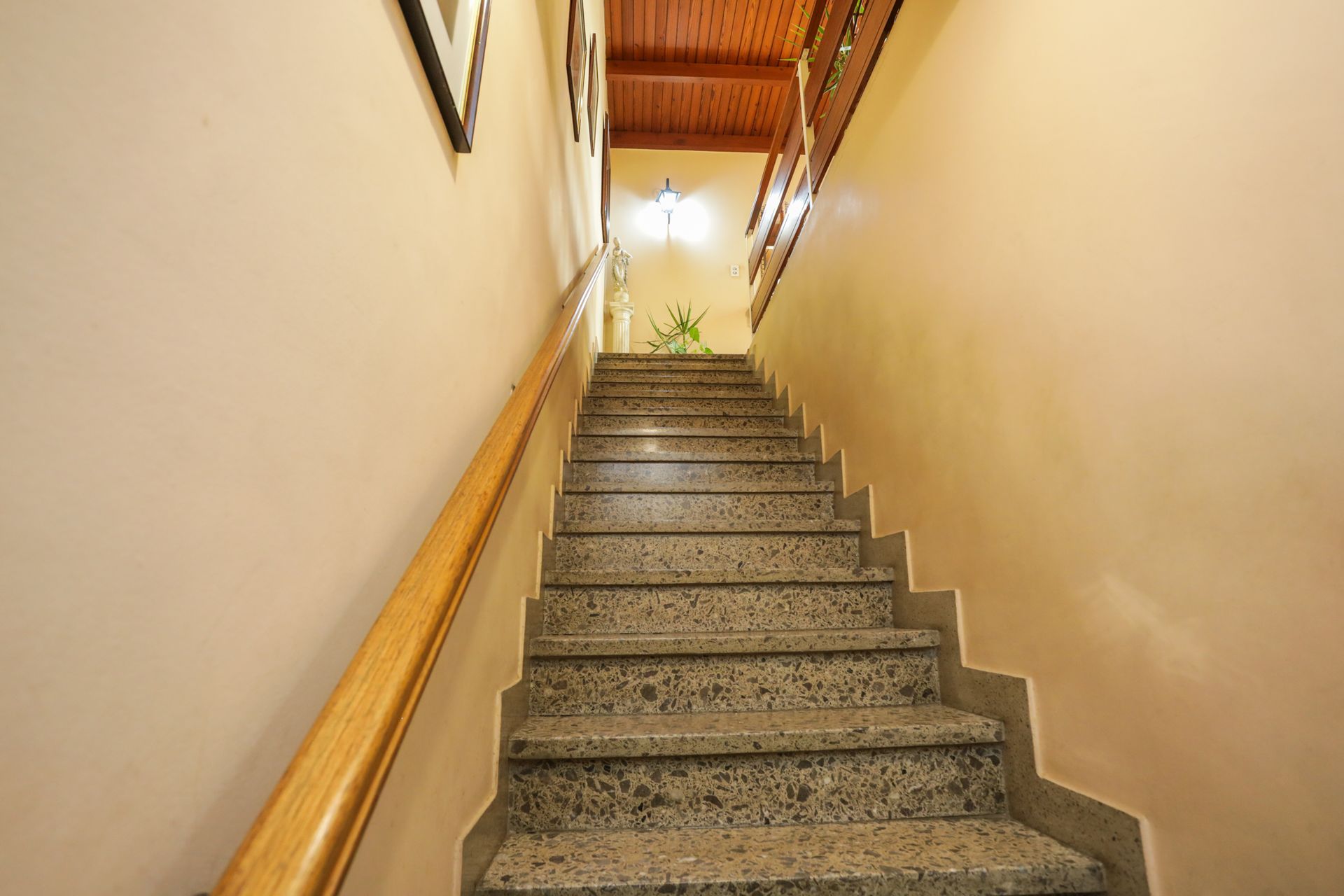 Ascending the stairs, a wide reception hall leads to a living‑dining room with fireplace and continuous balcony, ideal for social gatherings. The kitchen‑dining area, fully equipped with pantries and low‑profile cabinetry, offers comfort and style. Four bedrooms with built‑in wardrobes (or three with desks) and two full bathrooms, one with shower and the other with bathtub, guarantee comfort and privacy. An additional patio provides further outdoor space.