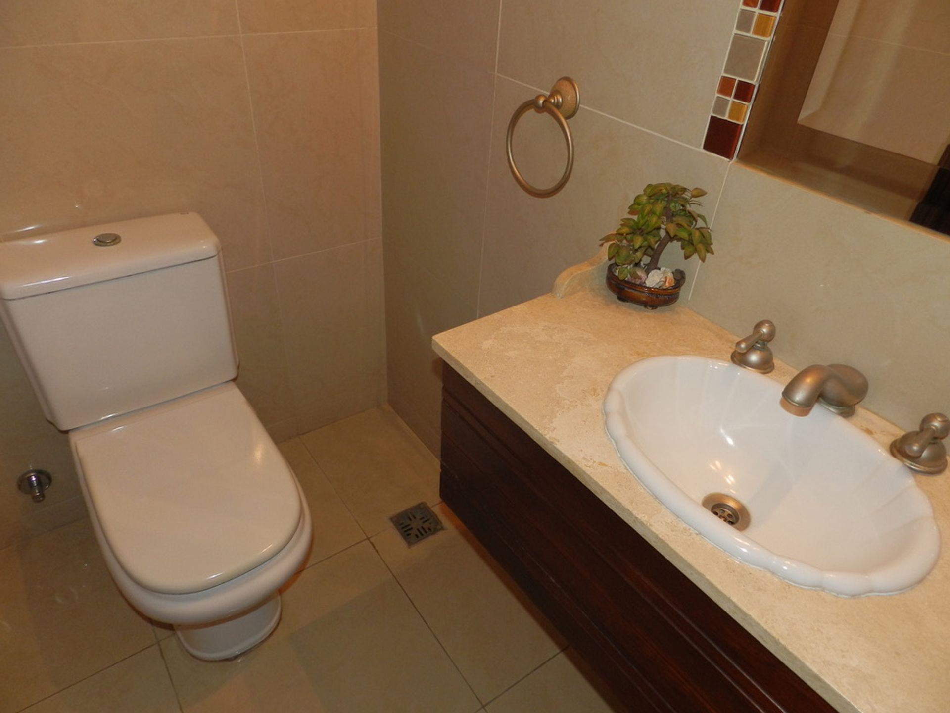 On the ground floor there is a spacious garage, a roomy kitchen, and a living area that opens onto an interior patio, creating a sense of spaciousness and brightness. A toilet, porcelain tiles, and a combined unit that integrates bathroom, kitchen, dining room, and two bedrooms, with wood and ceramic finishes, make this level a versatile option for a family or a professional space.