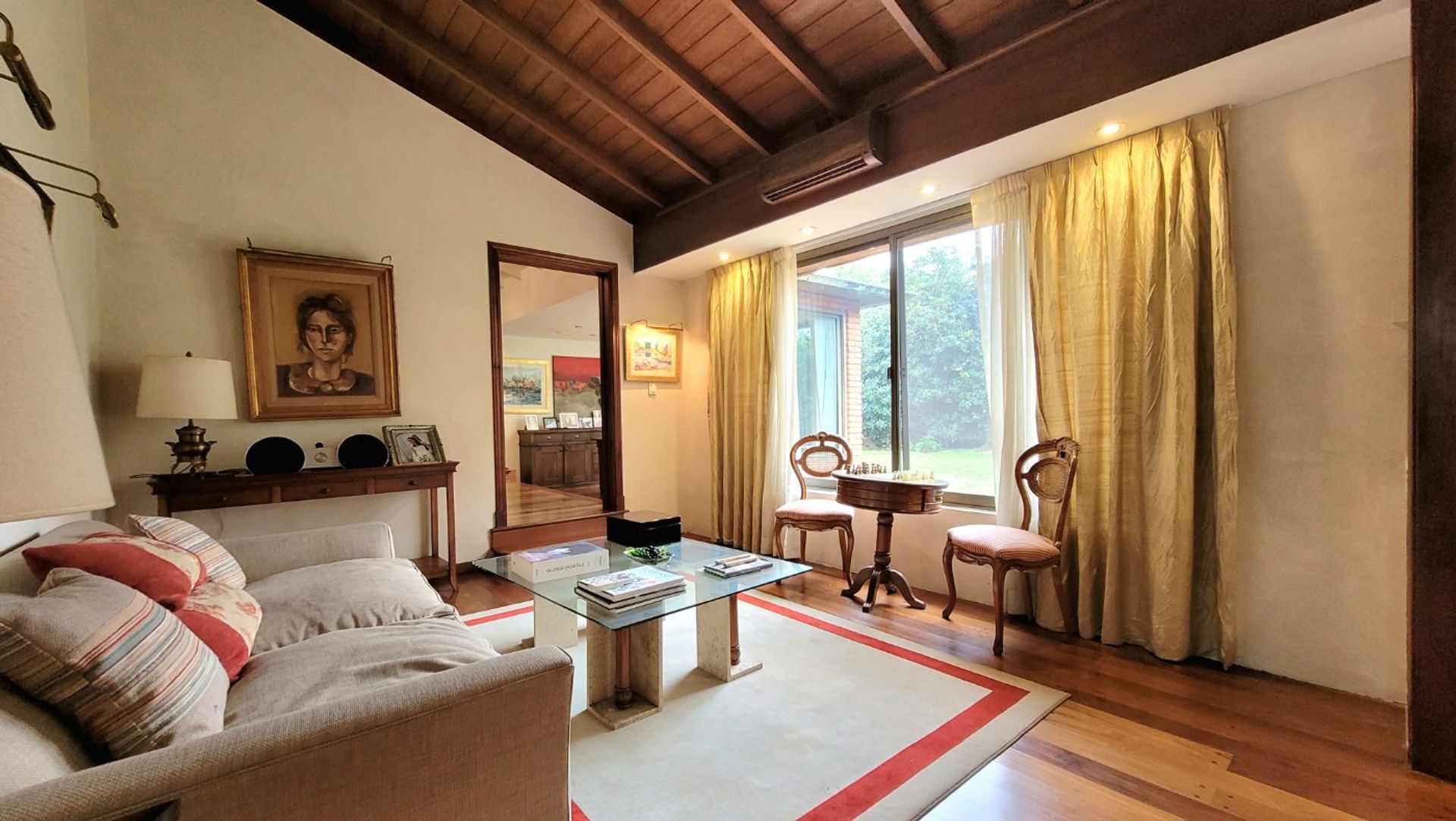 The exterior is equally impressive: a garden with sprinkler irrigation system, a barbecue area with covered and uncovered spaces for family gatherings, and a pool lined with Venetian tiles that offers a private oasis. The covered garage with automatic gate allows parking for two vehicles without inconvenience, and the laundry is conveniently located on the same level.