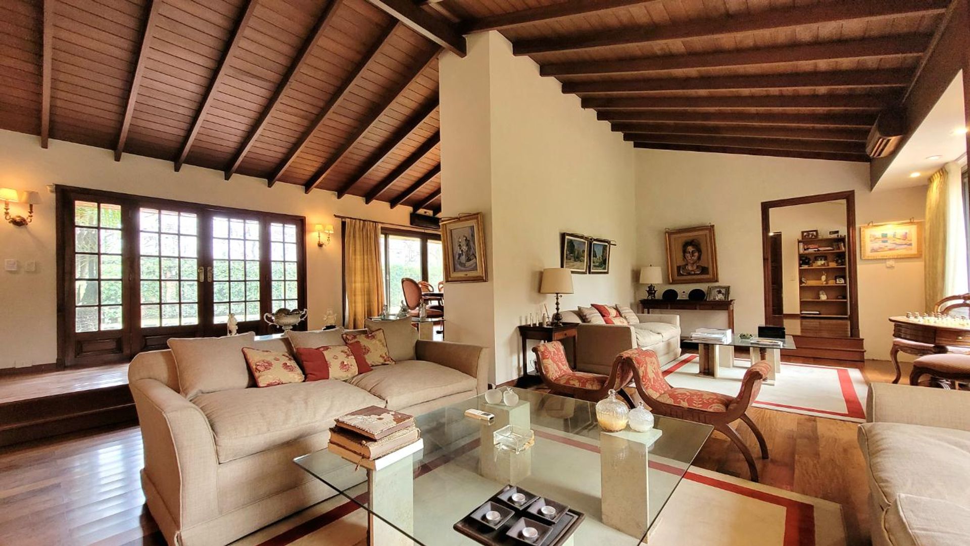 Located in the exclusive area of Las Lomas de San Isidro, this house stands on a 1,345 m² lot with 640 m² of built space, including garden, gazebo, and a pool clad in Venetian tiles. The property occupies a corner, providing access from two streets and ensuring privacy and expansive views.