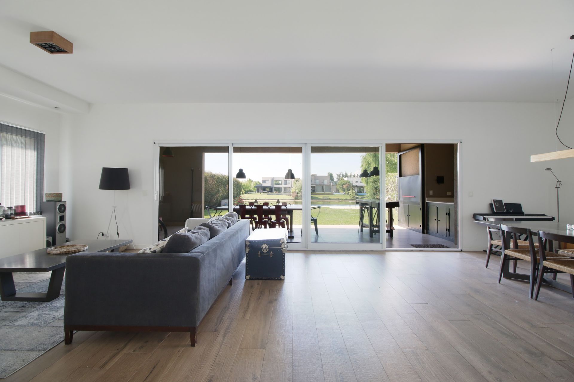 Upon entering, the wide living‑dining room, with large windows, opens to a gallery that allows a smooth transition between the interior and the exterior. On the same level there is an office (or fifth bedroom) with a guest bathroom, a generously sized kitchen and excellent storage space, as well as an independent laundry room and a room with a service bathroom.