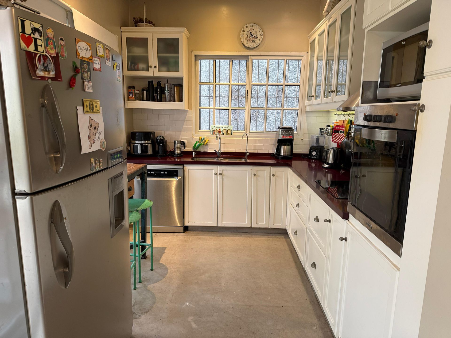 This elegant six‑room house stands on a private lot measuring 8.66 m in frontage, 8.87 m in depth, 23.41 m to the west and 25.30 m to the southeast, in the residential area of Florida, Vicente López. Its location on Estados Unidos Street, one block from Av. Bartolomé Mitre, provides immediate access to shops and essential services, while the neighborhood’s tranquility ensures a peaceful environment.