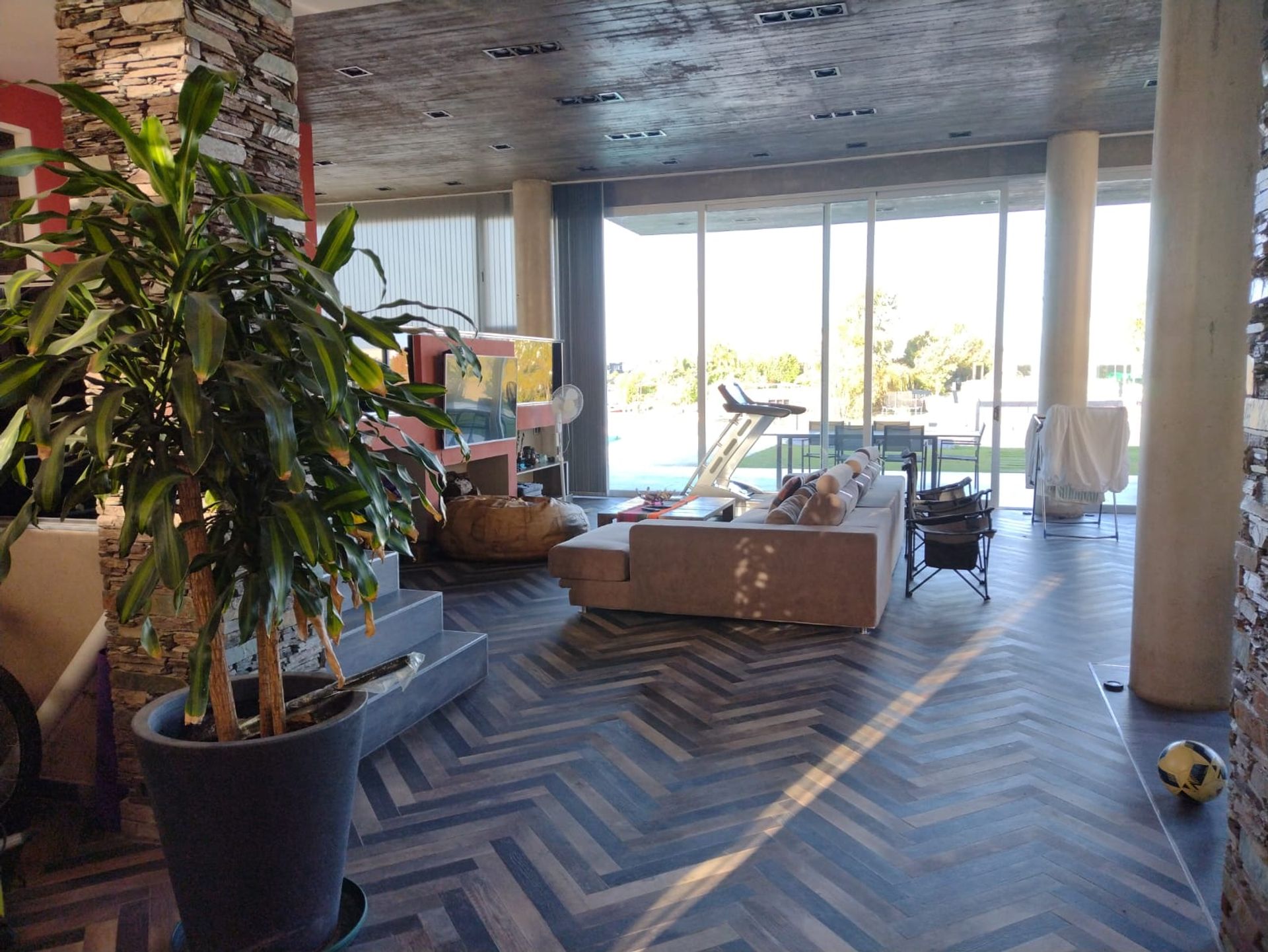 With 406 m² of built space across two floors, the house stands out for its brightness, excellent construction quality, and high‑end details. On the ground floor is an integrated kitchen with a daily dining area and a spacious living room with a wood‑burning fireplace, adjacent to an internal laundry and a service bedroom. The mezzanine houses a gym, a playroom, and a spa area with shower, dry sauna, and hydro massage for six people, all with panoramic river views that guarantee an incomparable relaxation environment.