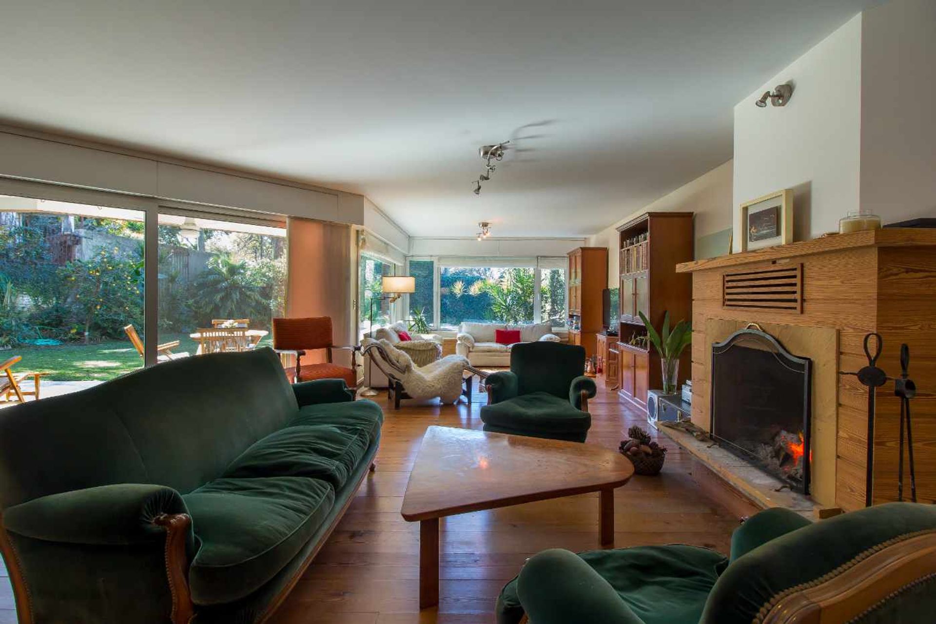 The basement houses a garage with capacity for six cars, ideal for collectors, and a service suite with a full bathroom and laundry. The residence features central heating by boiler and radiators, as well as split air‑conditioning (cooling/heating) in two bedrooms and the living‑dining area.