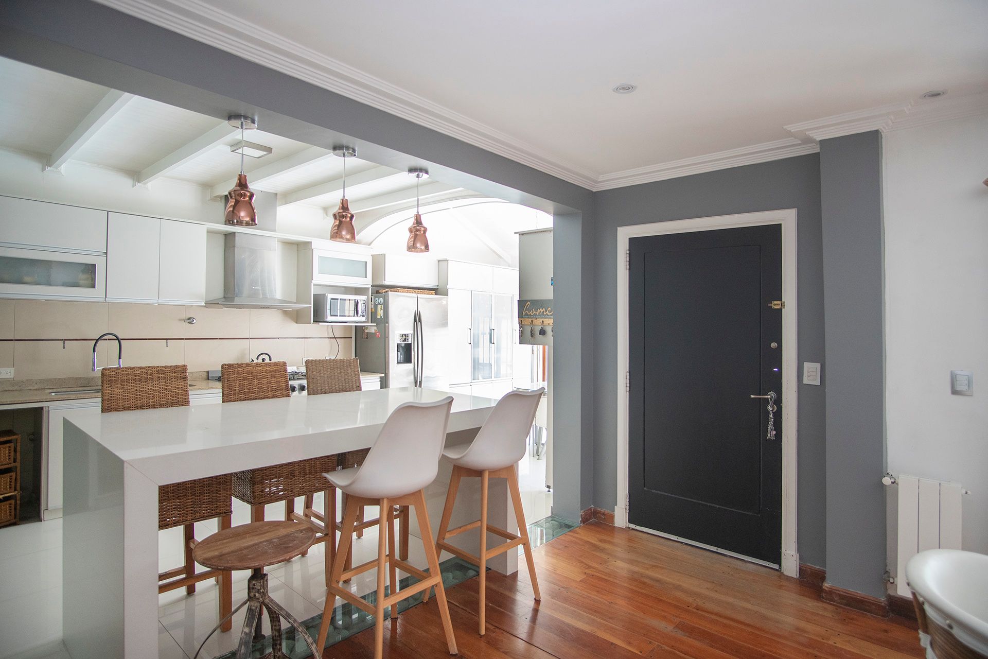 Located in the wooded area of Florida, Vicente López, on 2300 Martín J Haedo Street, between Juan B. Justo and Ayacucho, this seven‑room residence spans a lot with a frontage of 10 m and a depth of 45.5 m, situated in the heart of the Florida‑Vte block. The property comprises three levels and a service annex, in addition to a covered and uncovered garage for three vehicles, a patio, a heated pool, and a covered barbecue area.