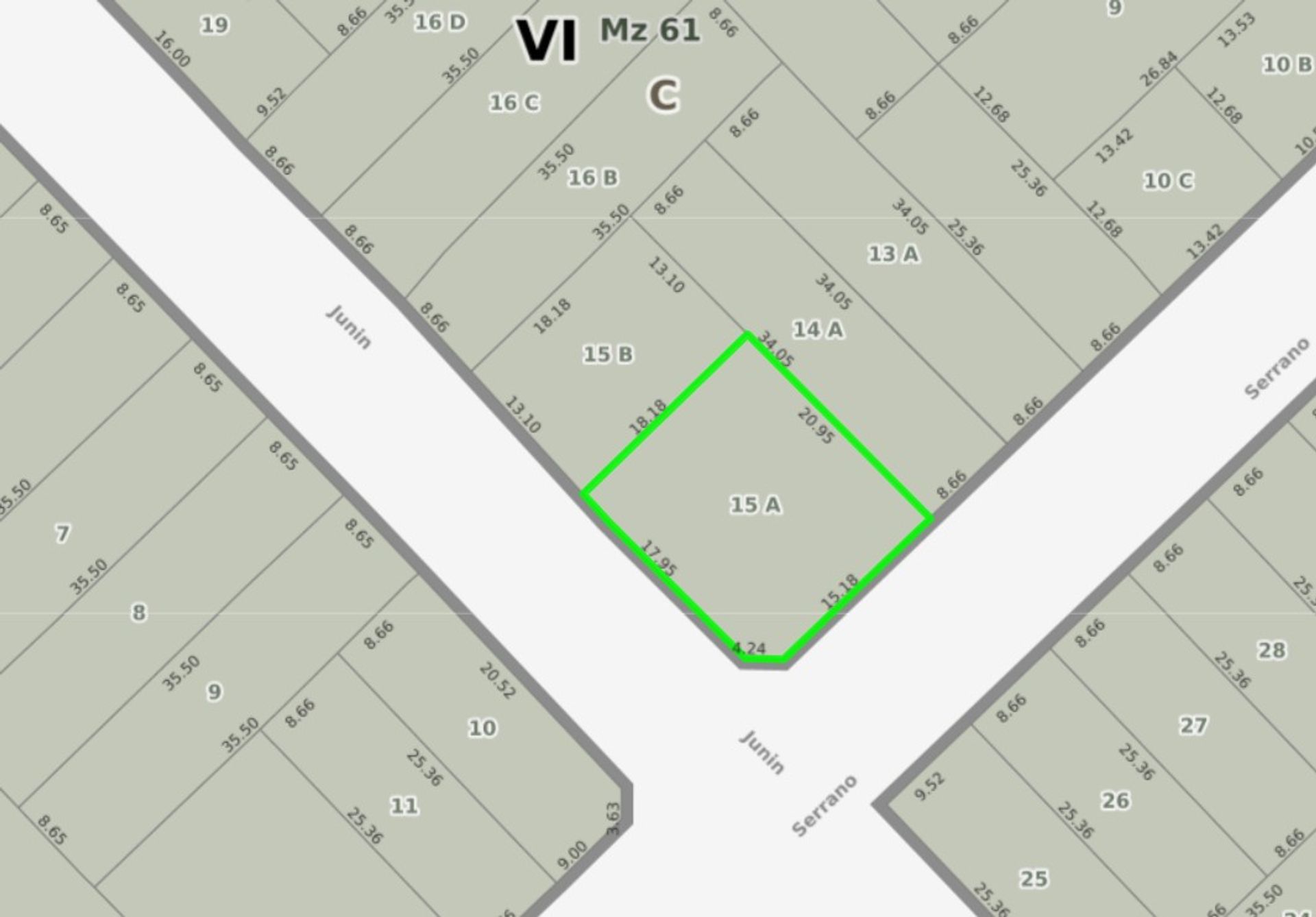 Located in the Boulogne area, this property is situated on the Ramal Tigre collector road, one block from Marquez, facing Monroe Street. The plot features a generous frontage of 8.66 m and a depth of 38.50 m, totaling a gross area of 333.41 m².