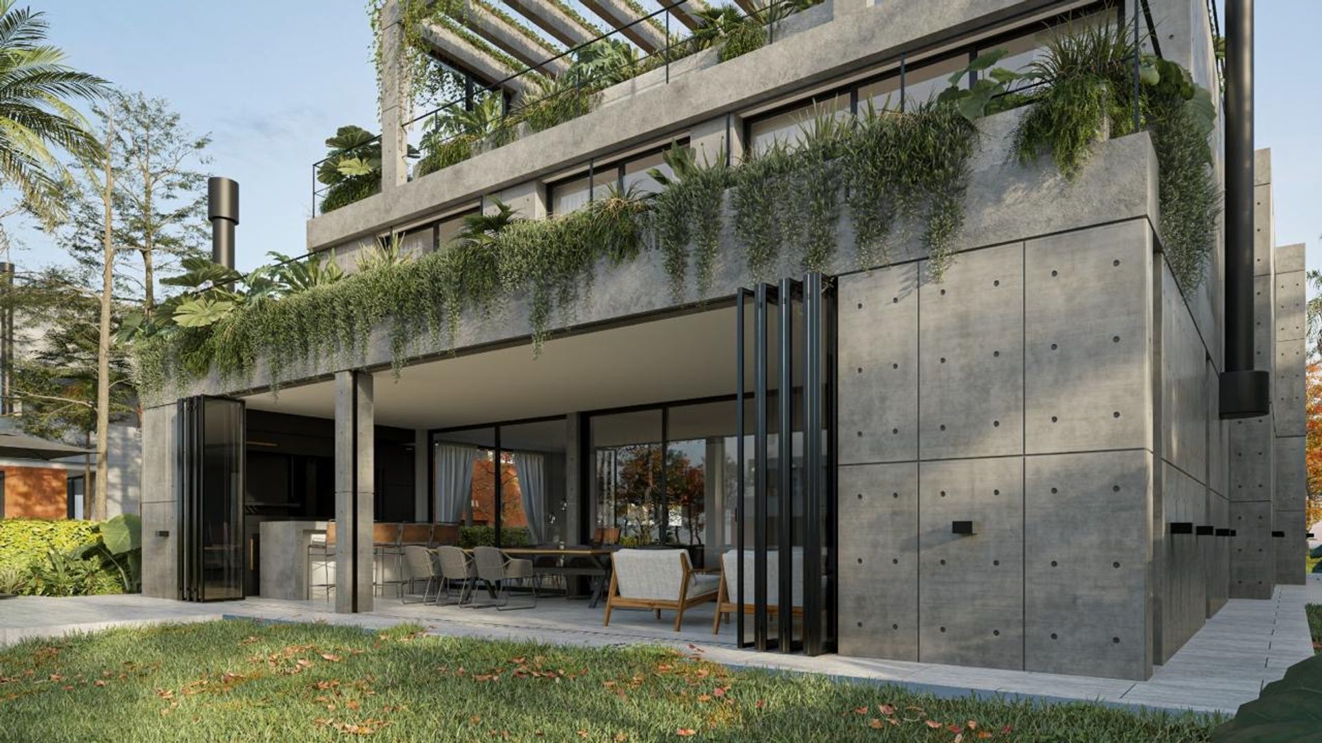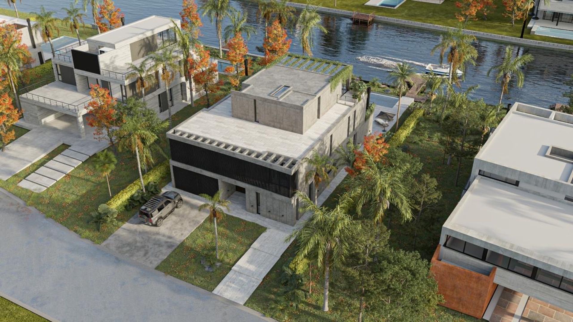 Modern home located in the exclusive neighborhood of El Golf de Norte, with a plot adjoining the central lagoon and panoramic water views. The construction uses exposed concrete and a double partition system with an air cavity, ensuring high‑quality thermal and acoustic insulation.