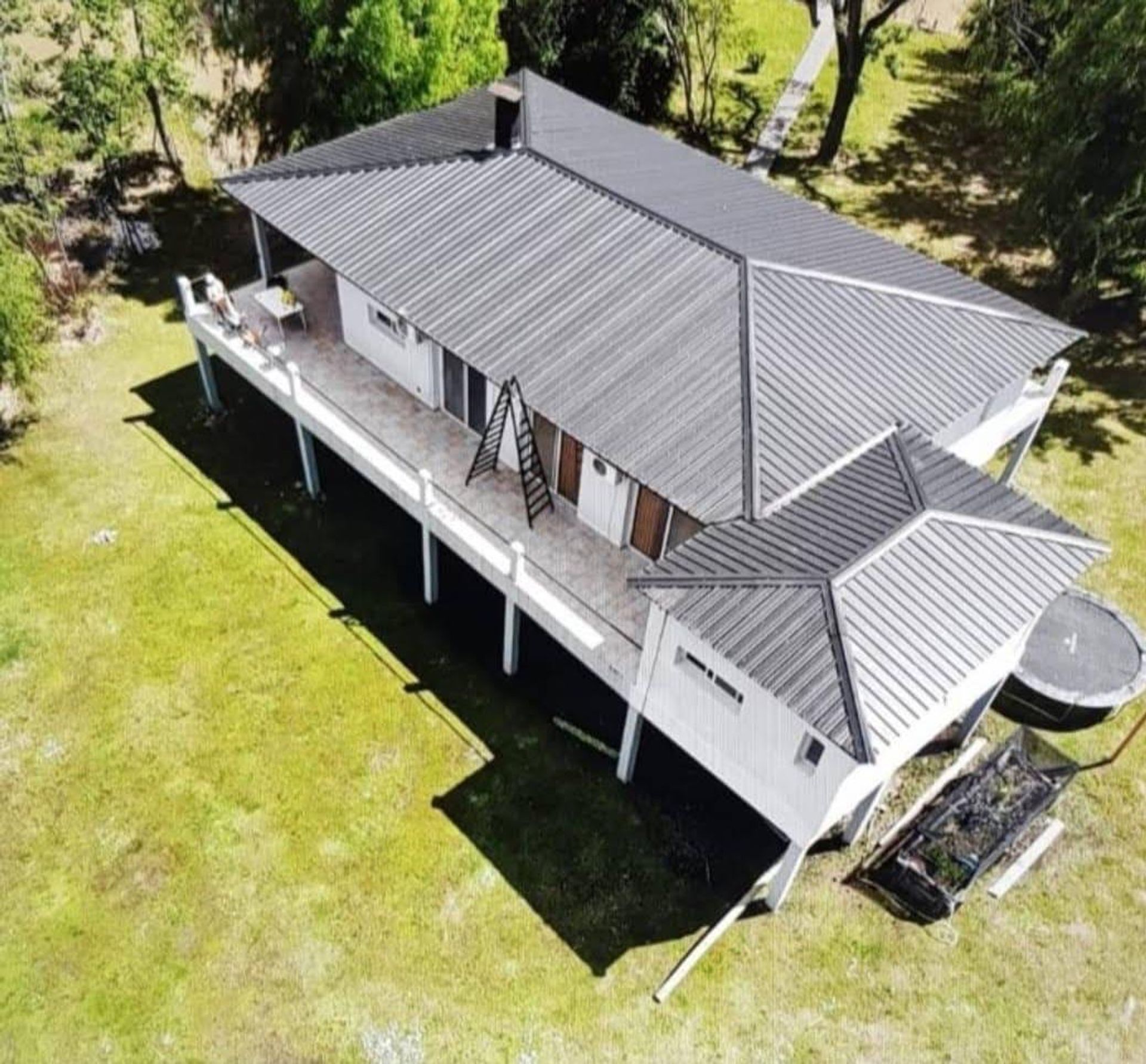 With capacity for ten guests, the property features three bedrooms, the master with an en‑suite bathroom, a spacious living‑dining area with an integrated kitchen, a laundry that also functions as a pantry, and a barbecue area equipped with a grill and a clay oven. The built‑up area is approximately 300 m² and has a frontage of 100 m (estimated measurements). The elevated construction guarantees full protection against flood rises.