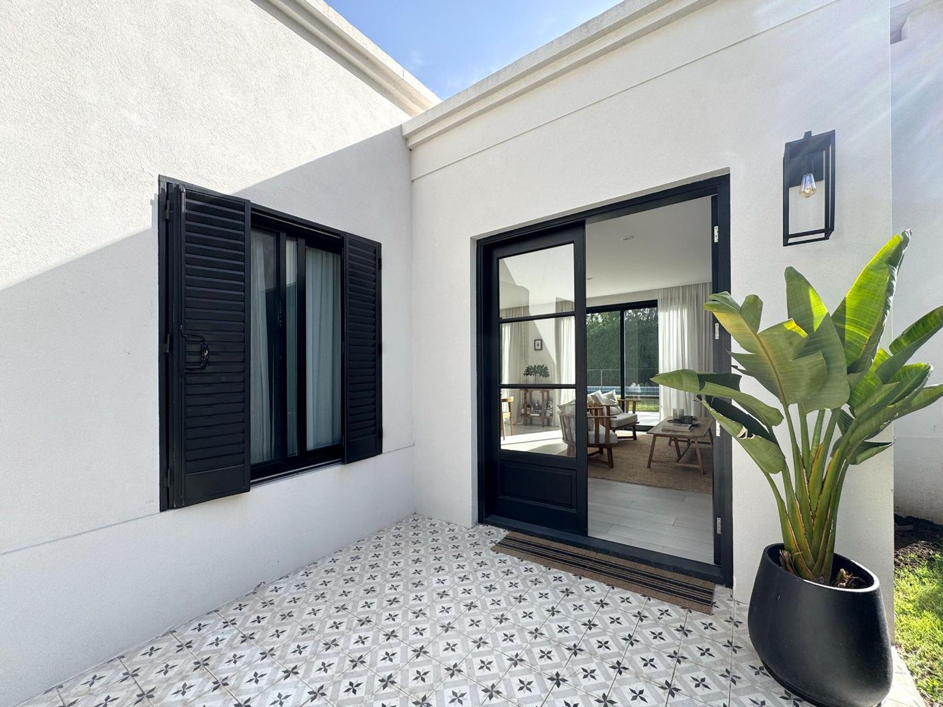 Nearly new house of 143 m² of finished area, situated on a 450 m² lot in the exclusive Rocío del Talar neighborhood, where only 16 residences exist and a family atmosphere surrounded by mature trees prevails. Entry is via an iron gate that leads to an internal courtyard ventilating the three bedrooms. Continuing through the courtyard, one accesses the dwelling, where a foyer with a wood stove opens onto a spacious living and dining area. The dining room, designed for eight diners, features double‑glazed windows with black frames and screens, providing views and natural light to the garden. The kitchen, open‑concept, incorporates a central island, built‑in electric oven and gas hob, with generous storage space and high‑quality finishes in fixtures and cladding. It connects to a playroom/family area, which in turn opens onto the garden and barbecue zone, also featuring a separate laundry area and pantry. The distribution hall includes a desk space and a toilet. Two bedrooms share a spacious full bathroom, while the suite includes a full bathroom and a generous walk‑in closet. All rooms are equipped with air conditioning. Externally, a 10 × 5 m pool and a Bahiana grass garden complete the property, which also features radiant floor heating. The neighborhood offers 24‑hour security and surveillance cameras. The location, 900 m from the Panamericana Highway (Km 26.5), facilitates access and is 40 minutes from the Autonomous City of Buenos Aires.
