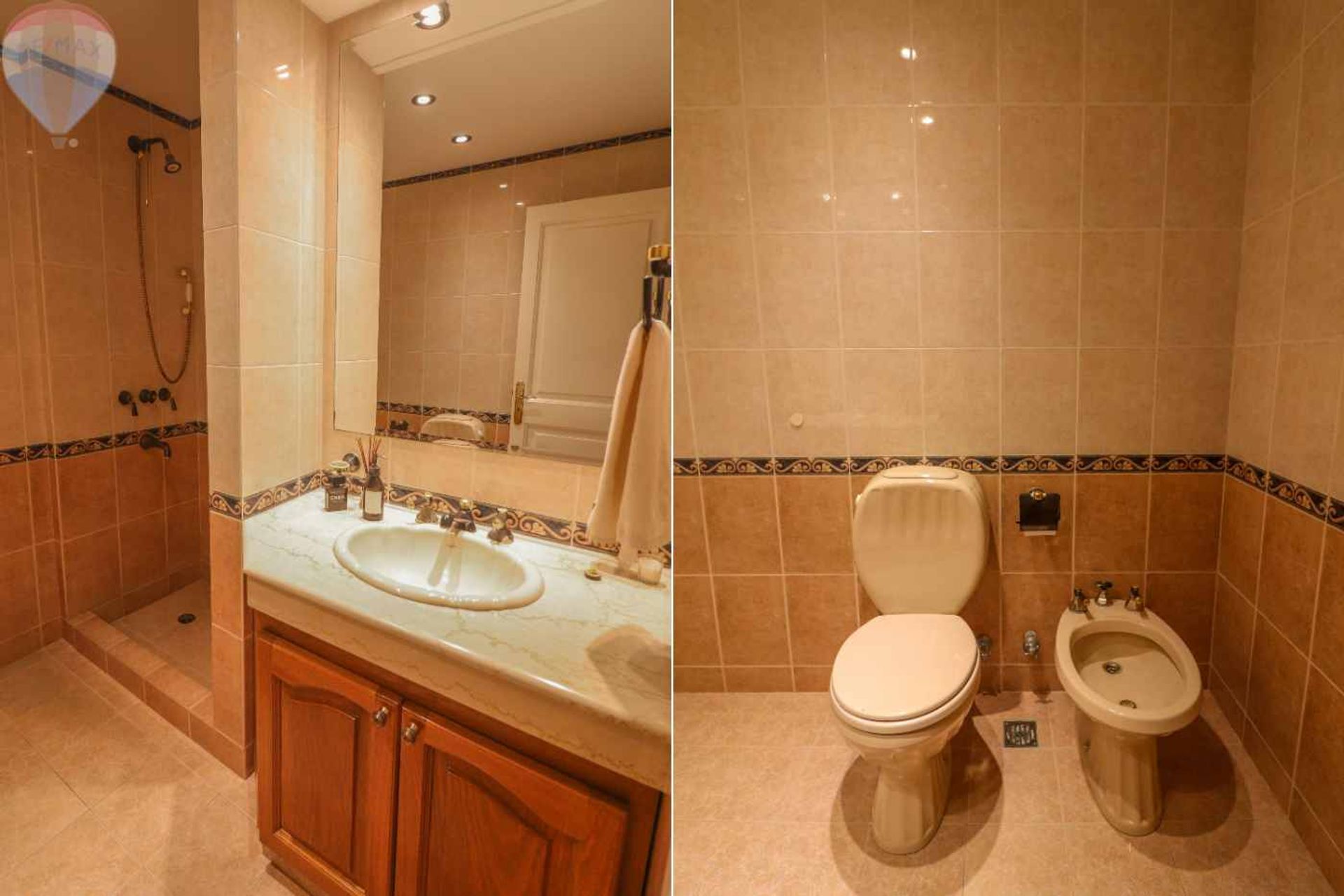 The basement houses the garage with capacity for 3 or 4 vehicles, alongside a service unit equipped with a bathroom.
