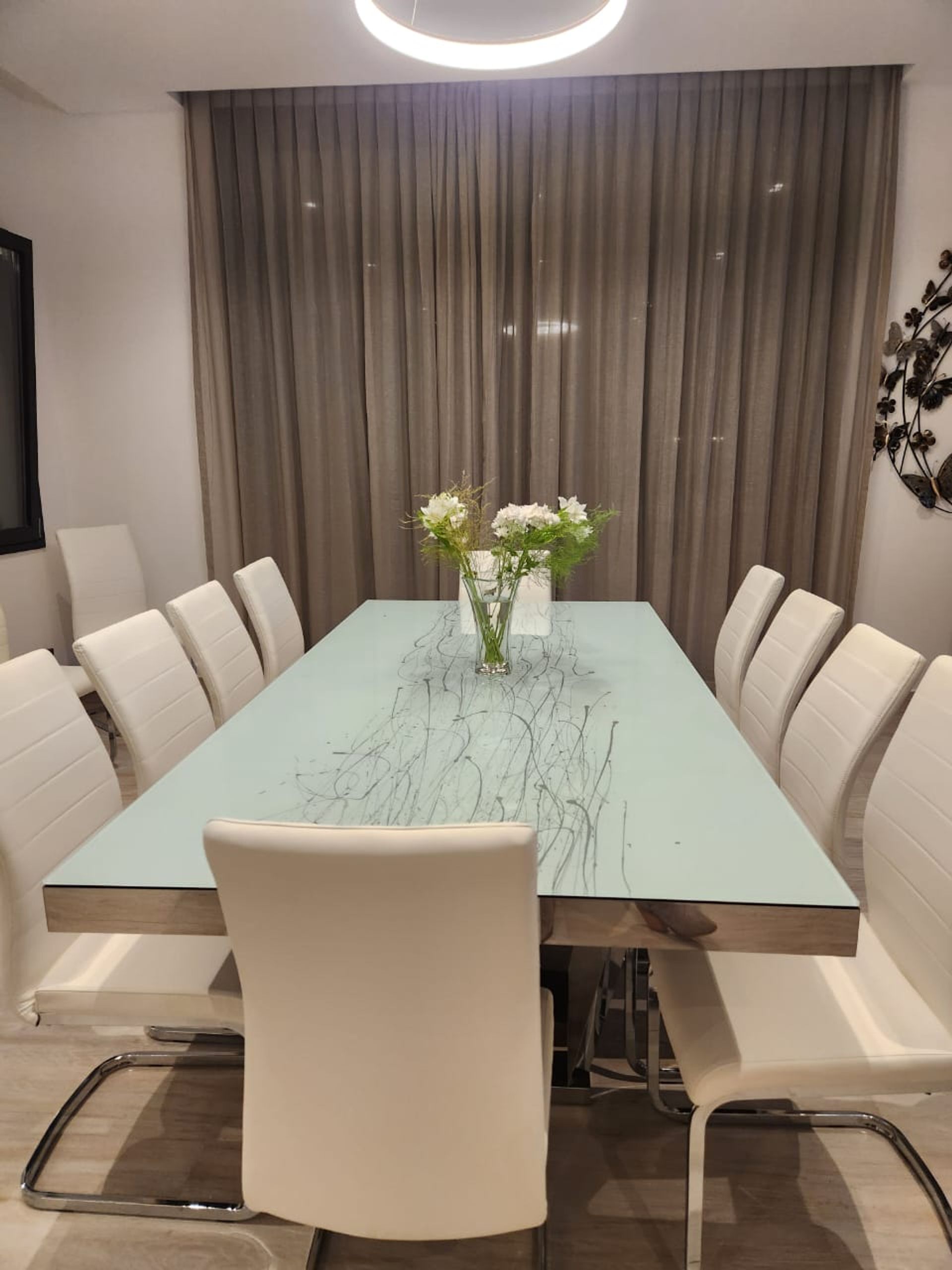 On the ground floor, access is via an elegant entrance hall leading to the social area: living room, dining room, kitchen, and toilet. Floor‑to‑ceiling windows, 3.20 m high, provide a panoramic view of the garden, pool, lake, and pier. The kitchen, equipped with a central island and branded appliances, connects to the laundry area, which offers ample storage space, a drying area, and a washing machine with a side external outlet. An independent entrance leads to another suite.