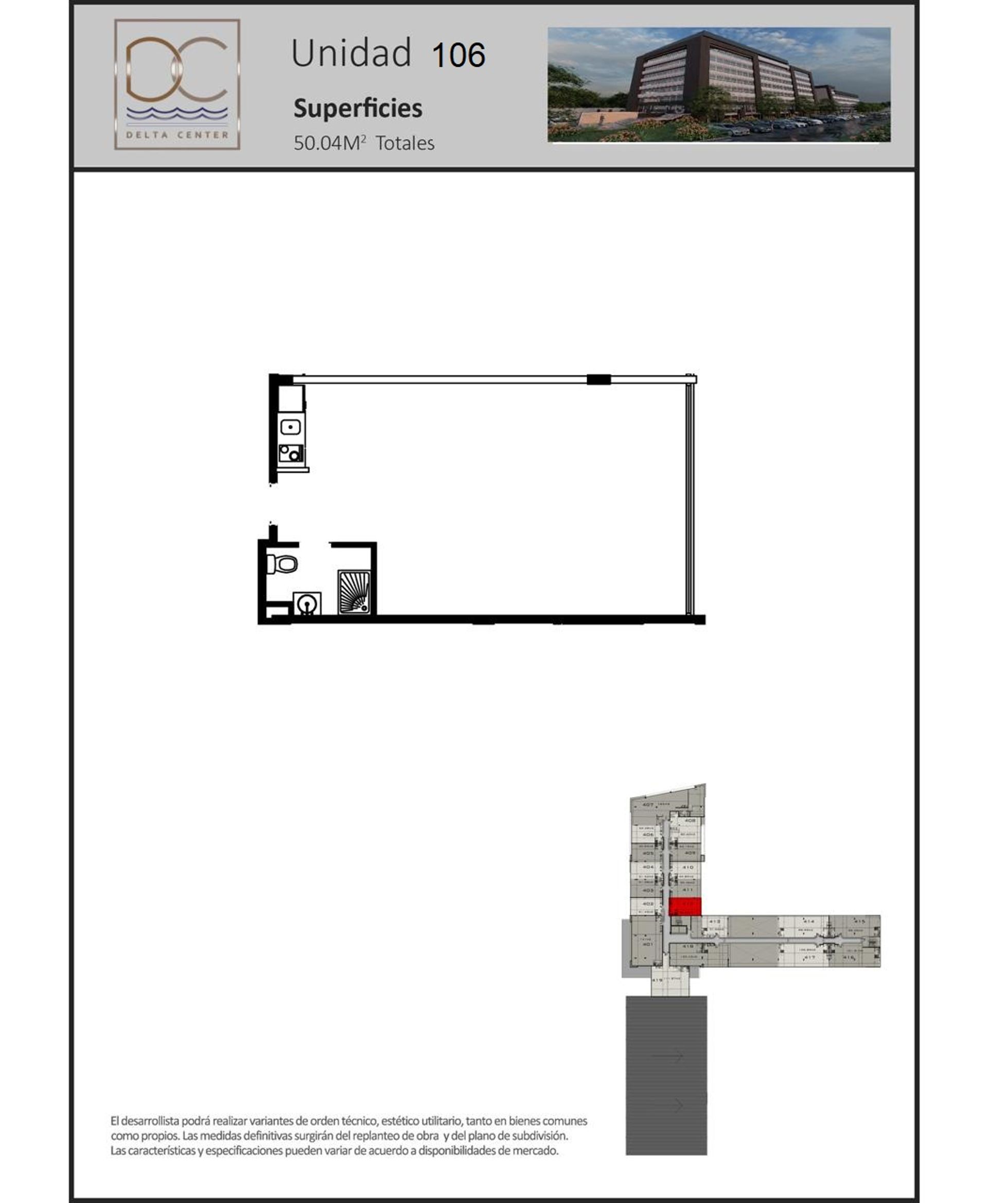 Loft apartment of 50 square meters, brand new, located on the first floor of the Delta Center complex. Its open and spacious design offers great brightness thanks to the windows that allow an excellent entry of natural light. The kitchen is equipped with the necessary elements to use it both in a residential or office context, while the bathroom features a shower and functional fixtures. The property has air conditioning installation and 24‑hour security.