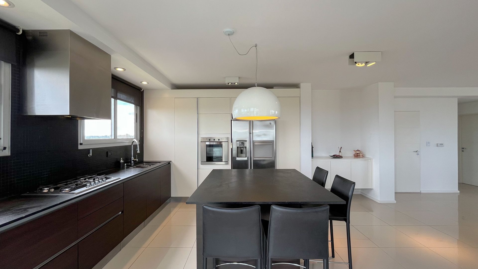 On the ground floor there is a private vestibule with a reception closet and toilet. The spacious living‑dining room, fully glazed, integrates with a modern and functional kitchen, creating a fluid and bright space. The perimeter terrace, with electric grill, surrounds the unit and offers the possibility to enjoy the outdoors from any room. Additionally, it has an independent laundry area for added convenience.