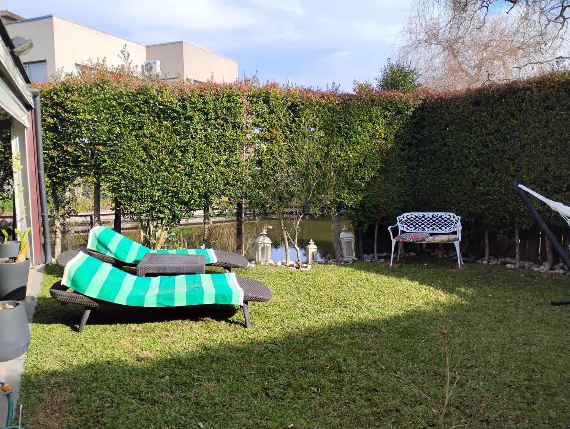 On the ground floor is a spacious living‑dining area that connects to the garden through large windows, creating an excellent indoor‑outdoor integration. The kitchen is comfortable and functional, and the reception toilet adds convenience to everyday life. It also includes a separate laundry room, with the option to reactivate the former service bathroom. The gallery with a grill and the private patio overlooking the water are ideal for enjoying intimate outdoor gatherings, making it one of the most private homes in the neighborhood.