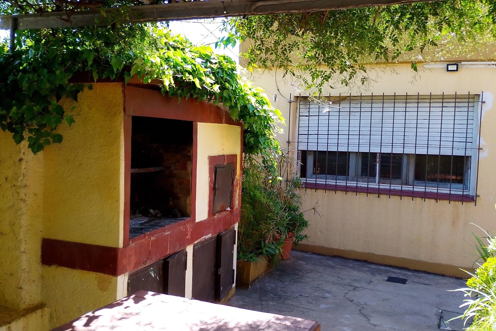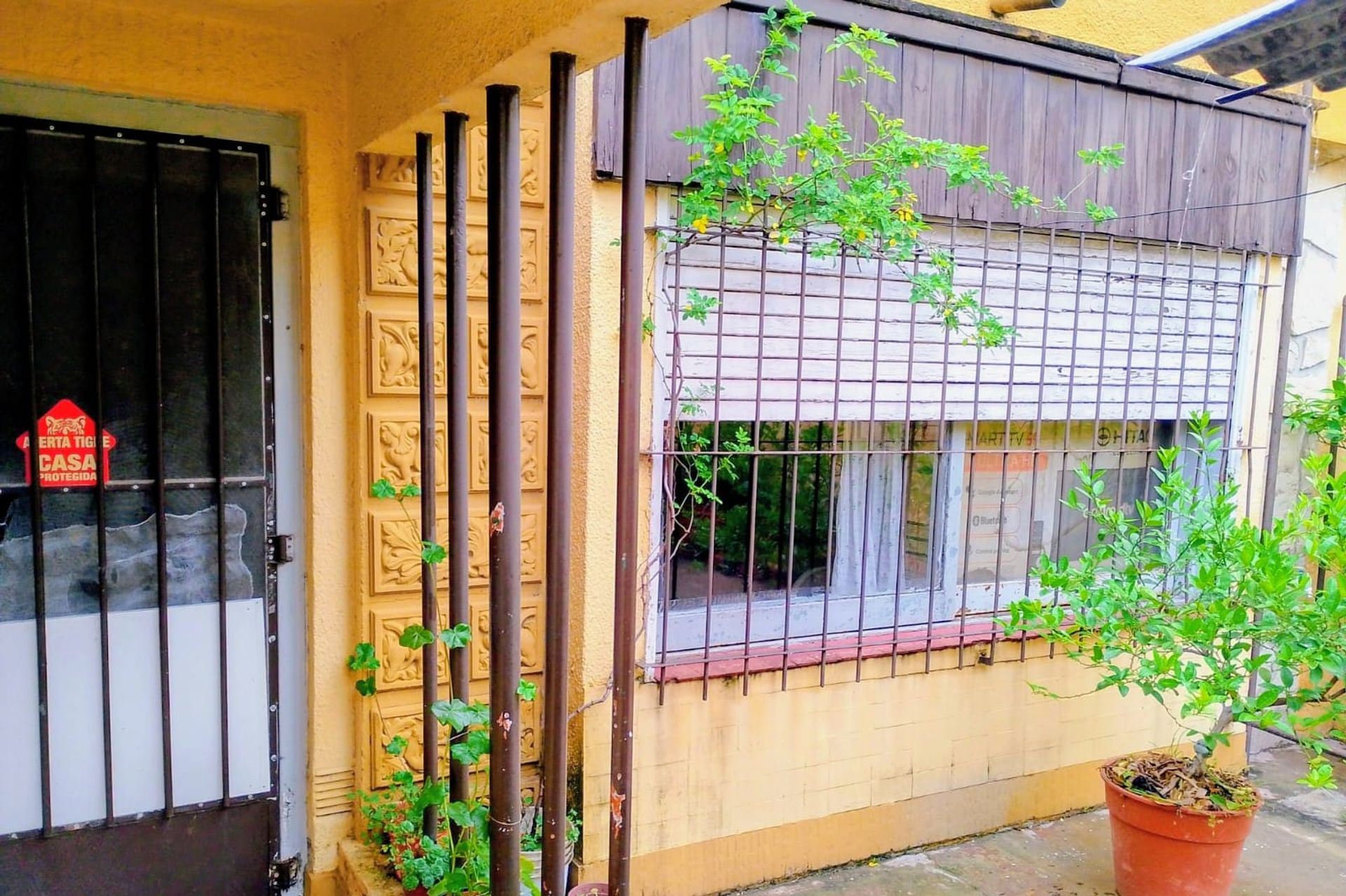 The main house features a spacious living-dining area, functional kitchen, full bathroom, and generous bedroom that opens onto the second patio. Each unit has independent access, allowing the property to be used as dual rental or to combine living and work in the same place.