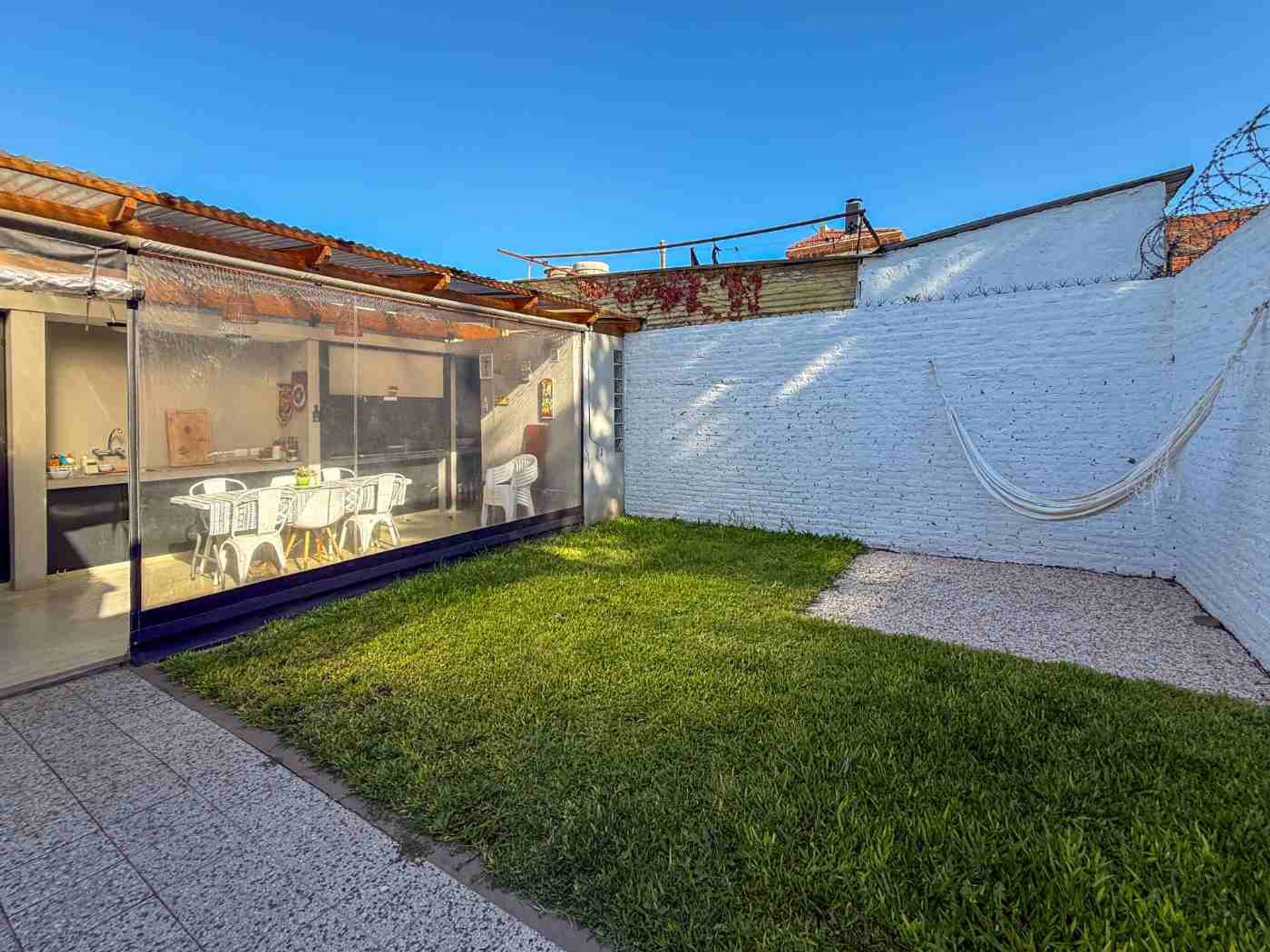 One of the major attractions of the property is its covered patio with grill, ideal for family gatherings or meetings with friends. The patio has a full grill, a counter with a sink, a spacious area for a table or outdoor living, and an independent toilet. The garden perfectly complements this space, offering privacy and the possibility to enjoy the outdoors at any time.