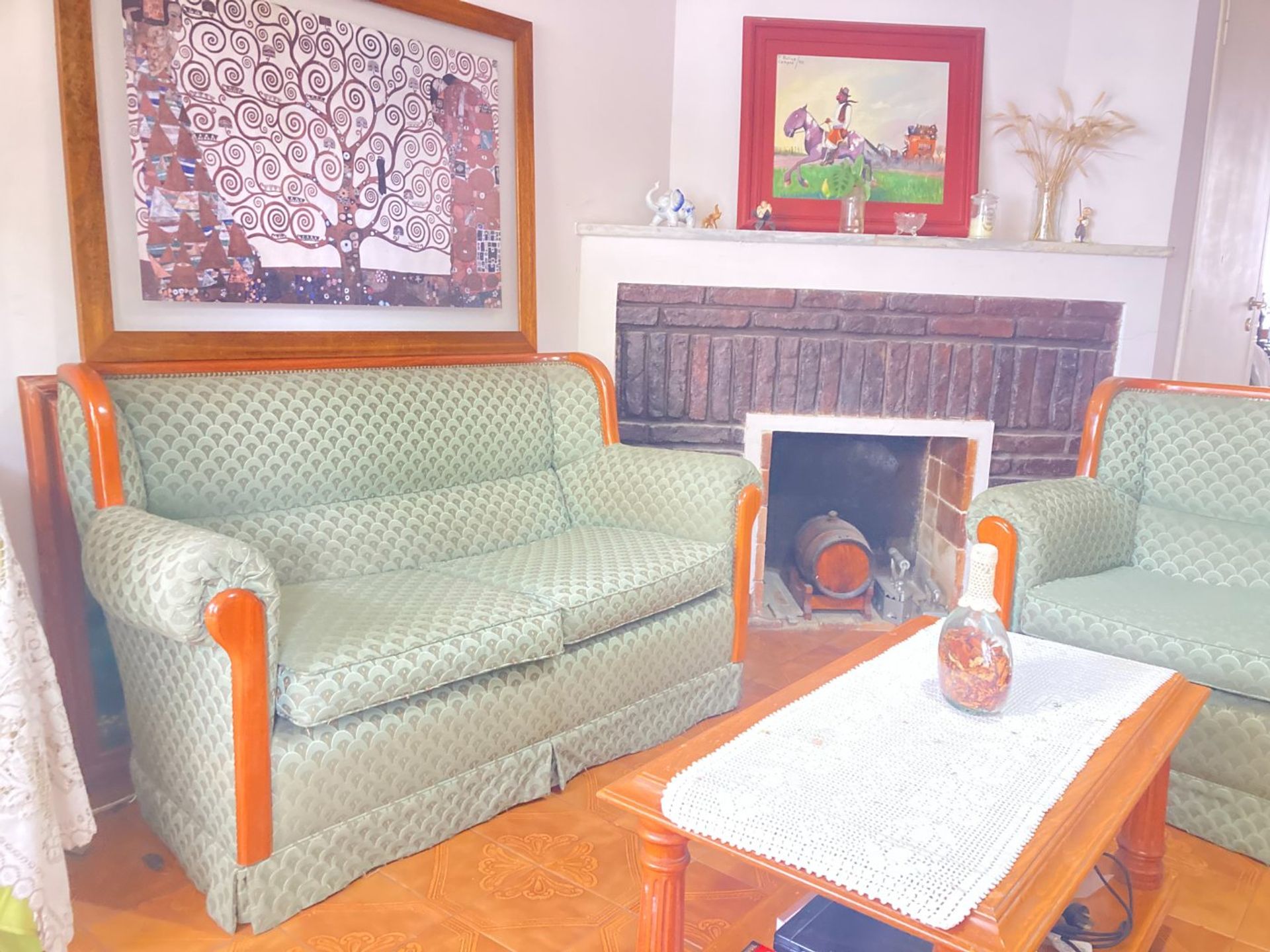 On the ground floor there is a cozy living room with a fireplace, ideal for cooler days, and a guest toilet. The kitchen‑dining area, with access to the patio, allows a seamless connection between interior and exterior spaces, creating a versatile and functional environment.