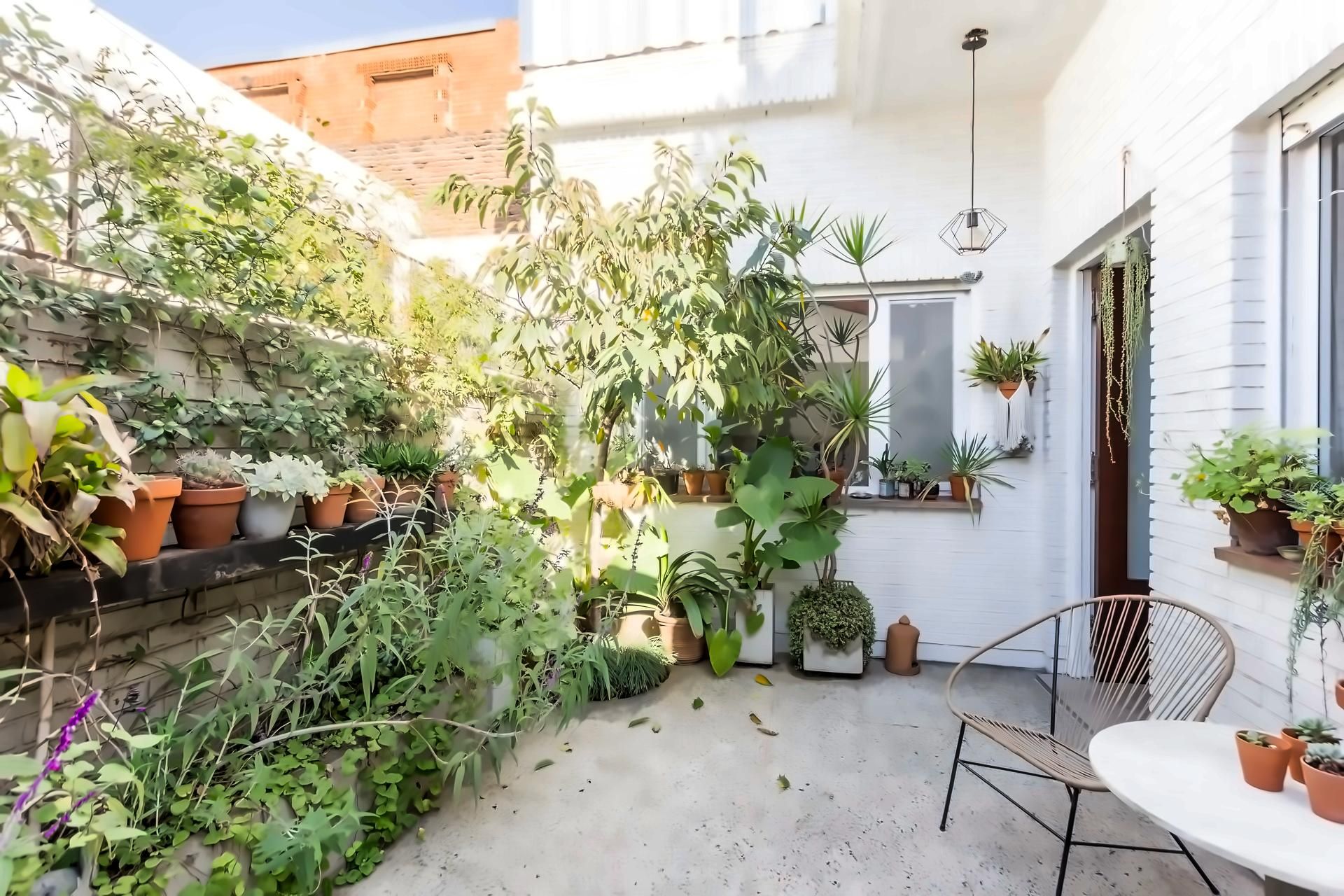 Three‑room apartment with patio and terrace, fully renovated with high‑quality materials and finishes. The unit, located in a block courtyard, sits at the rear of a three‑unit building and shares a corridor with only one other dwelling. It has no maintenance fees and complies with housing regulations.