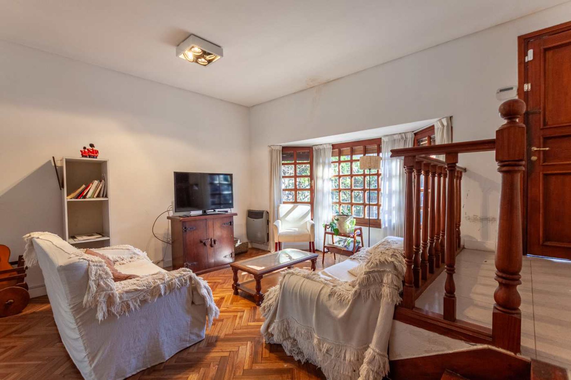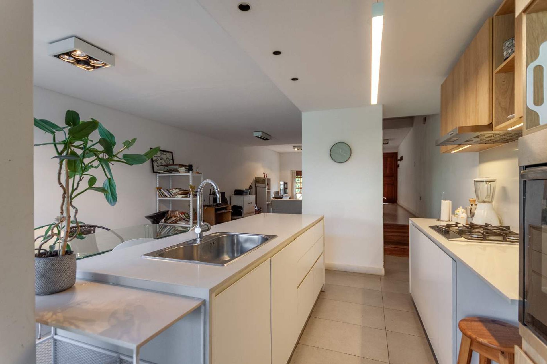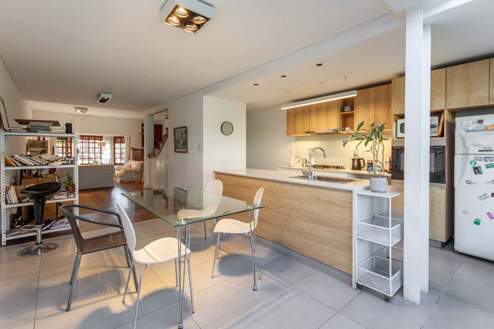 A bright duplex with three rooms, recently renovated in San Fernando. The ground floor features a separate entrance that leads to a spacious living‑dining area with direct access to the garden and a translucent panel that provides natural light. The kitchen, with a semi‑integrated island, is designed for everyday convenience, while the reception toilet complements the entrance.
