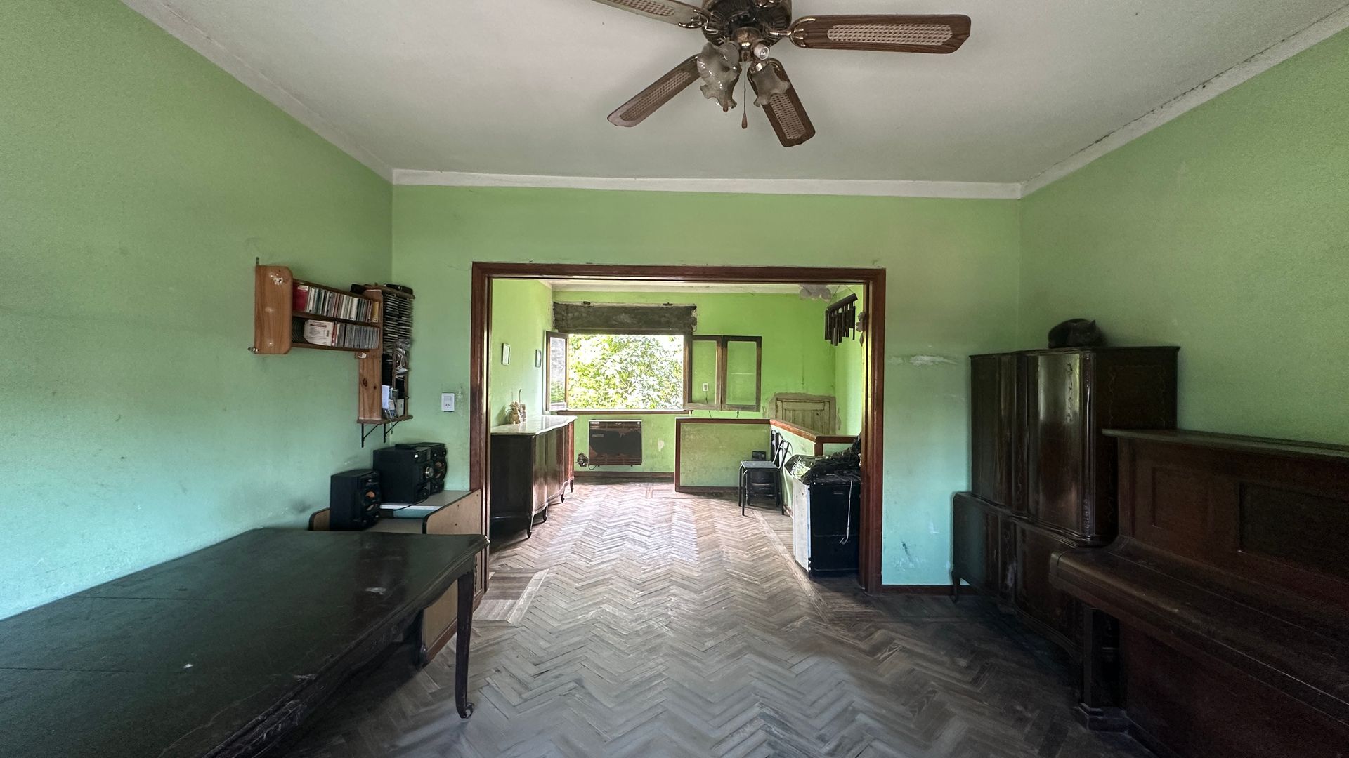 The residential unit, situated on the first floor, is accessed via a staircase and features three bedrooms, a spacious living‑dining area, a kitchen with plumbing renewed a year ago, and a full bathroom. It also provides access to the rear garden, located on the ground floor behind the commercial space. The overall condition requires remodeling, although the unit is habitable, and the commercial space can be accessed from the residential staircase.