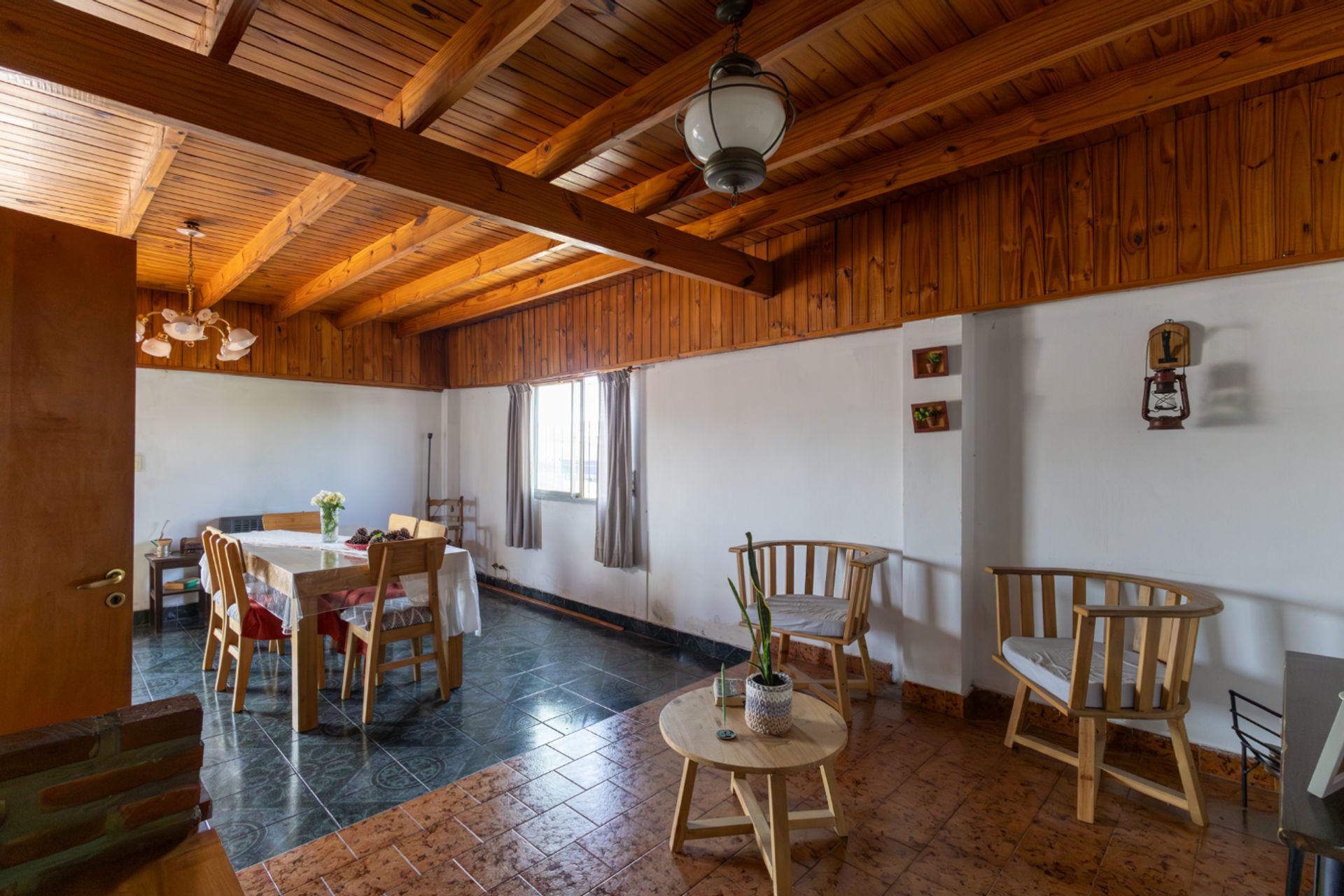 To the right is a functional kitchen with a daily dining area and direct access to an independent laundry room, optimizing the flow of the service area.