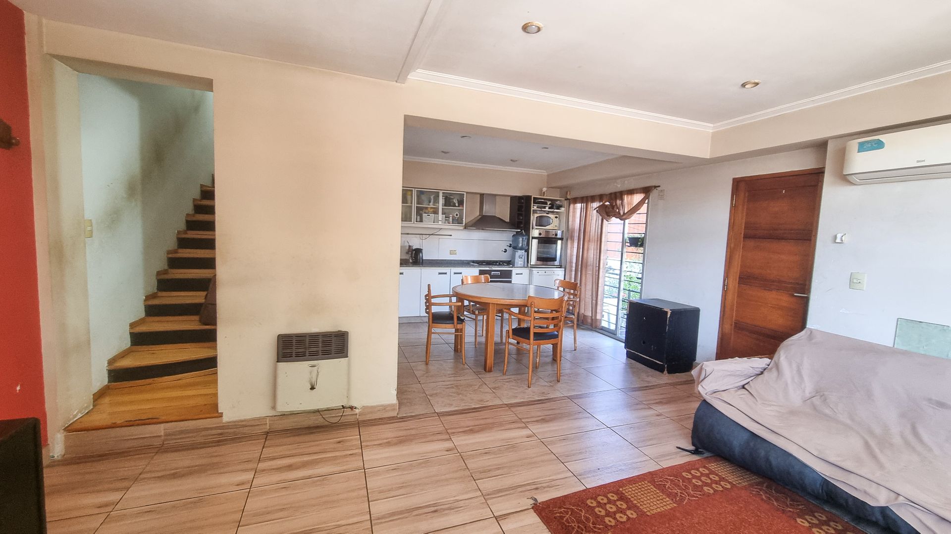 This 3‑bedroom apartment features a spacious enclosed patio on the ground floor that can be used both for storage and to install a quincho (barbecue area). The fixed covered garage with automatic gate provides convenience and security. Upstairs, a bright living room opens onto an integrated kitchen, creating a sense of spaciousness. A toilet complements this social area. At the same level are two bedrooms and a full bathroom, offering privacy and comfort. The second floor houses a playroom, an additional bedroom, and another bathroom with shower. Located near Paraná, the property combines the tranquility of a residential setting with immediate access to various shops and excellent public transport that efficiently connects with the rest of the city. It is a first‑floor unit by stairs, part of a complex of four units.