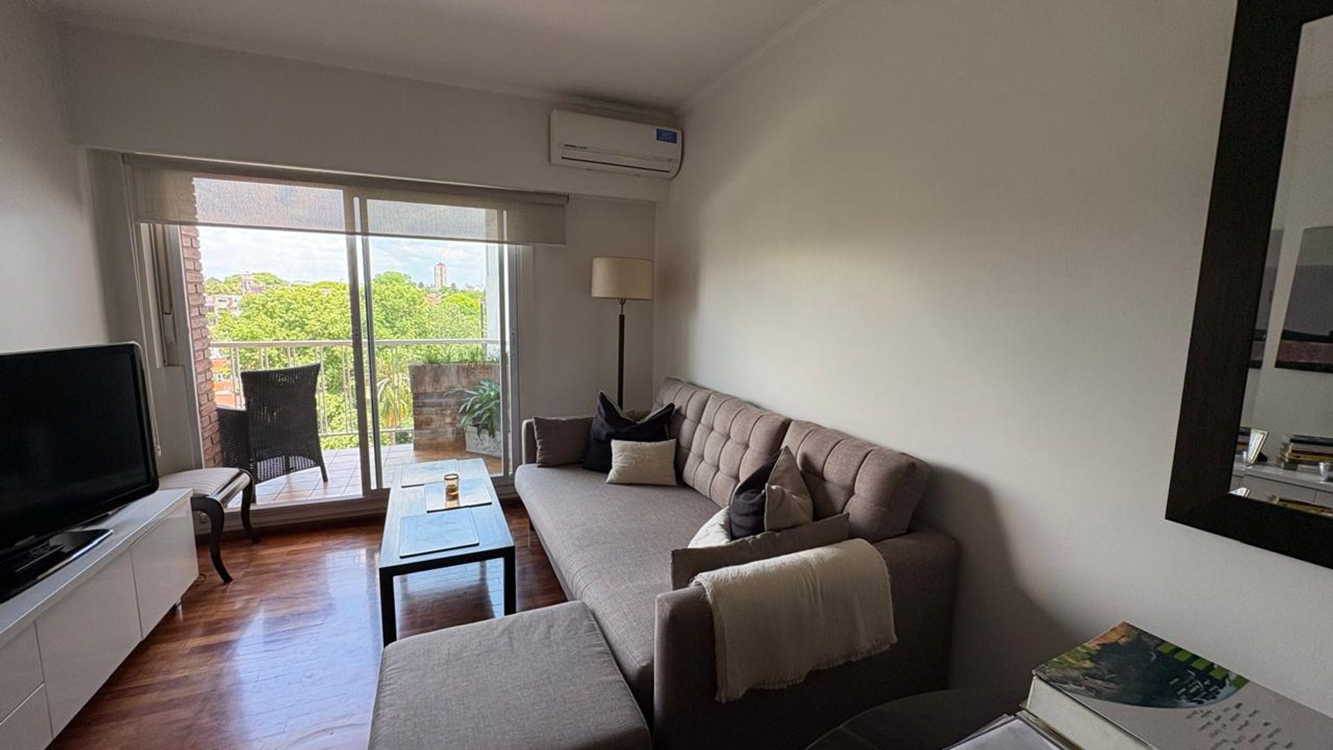 Available from December 12, 2025 to February 25, 2026, and again from April 22, 2026 to January 21, 2027, this two‑bedroom apartment is located on the first floor of a building with amenities, facing Av. Libertador, in Vicente López.